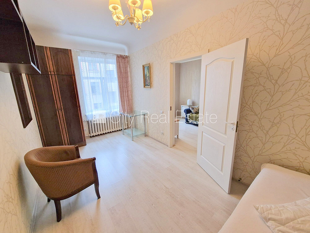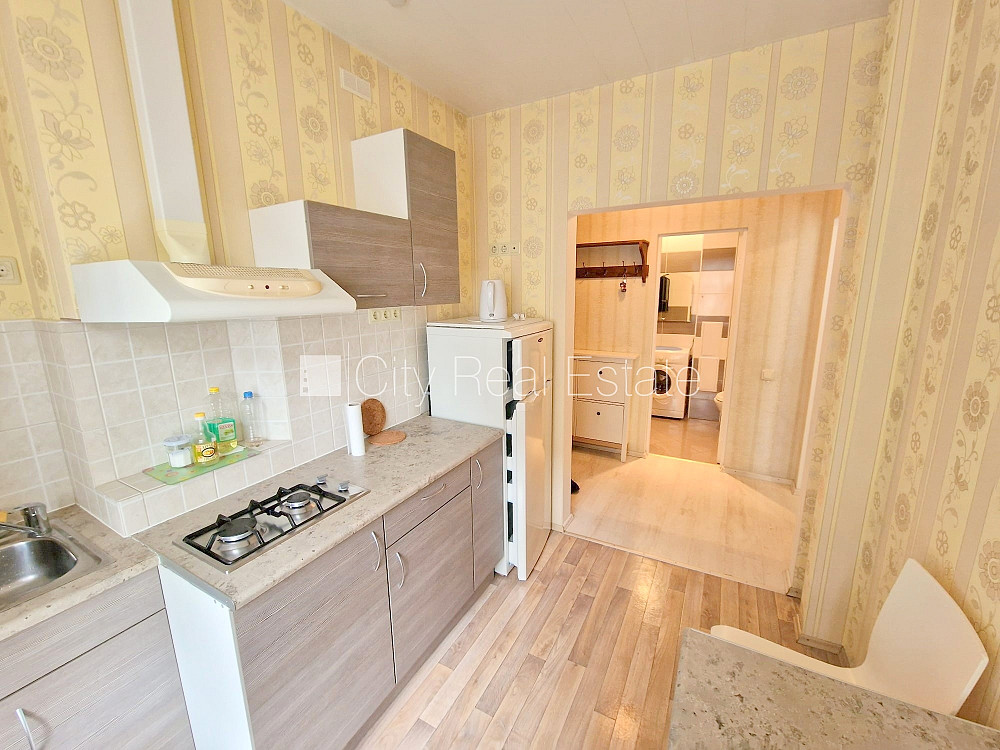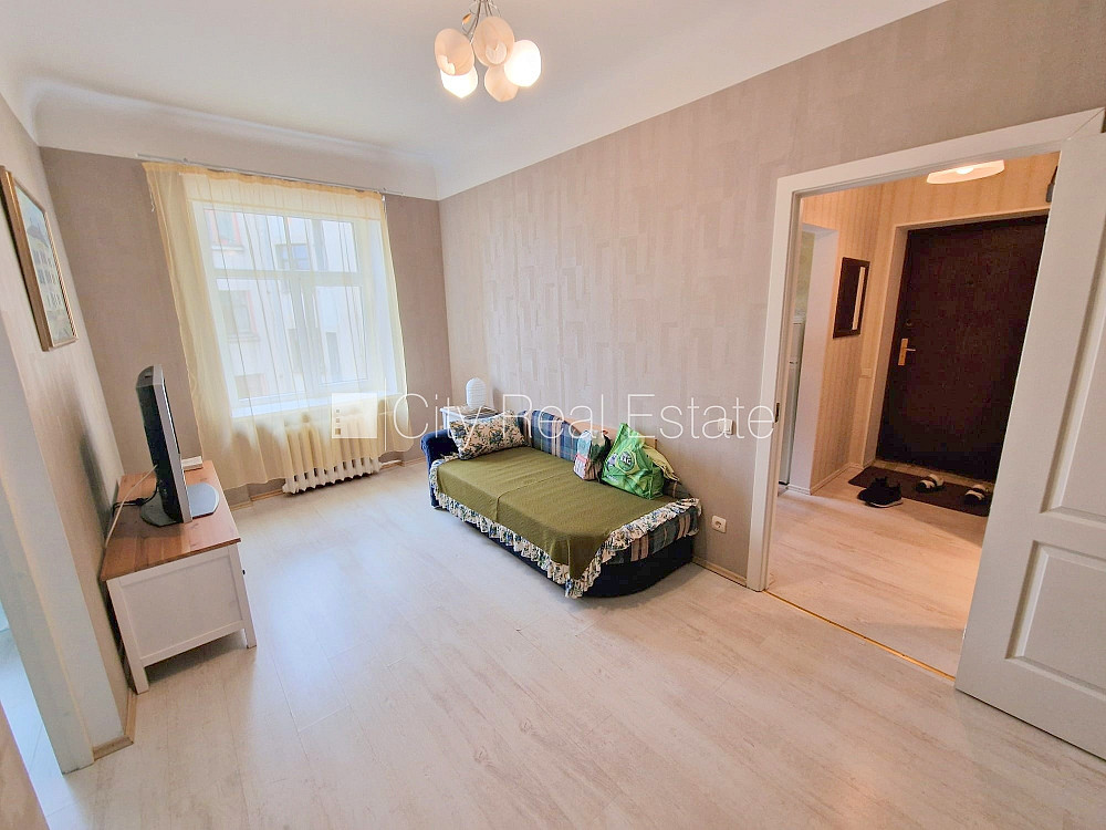 Fasādes māja, slēgts pagalms, ieeja no pagalma, ir lifts, logi vērsti uz ielas pusi, plašs skats no loga, guļamistabu skaits 1 gab., viena istaba izolēta, viena istaba caurstaigājama, virtuve, augstie griesti, centrālā apkure, plastikāta stikla pakešu logi, krāsotas sienas, jauna santehnika, lamināta parketa grīda, sanitārais mezgls apvienots, dušas kabīne, tualete, iebūvēta virtuves iekārta, dīvāns, divguļamā gulta, galds, krēsli, skapis, televizors, ledusskapis, gāzes plīts, tvaika nosūcējs, veļas mašīna, kāpņu telpā koda atslēga, izīrē ar visu bildēs redzamo aprīkojumu, uz 1 gadu, ar iespēju pagarināt līgumu, atbrīvots, slēdzot īres līgumu, Jums būs jāmaksā par pirmo īres mēnesi , kā arī jāiemaksā drošības depozīts, izvēloties šo īpašumu, komisijas maksa par starpniecības pakalpojumiem ir vienāda ar vienu pusi (50%) no šī īpašuma viena mēneša īres maksas, CITY REAL ESTATE ID - 463573
