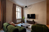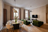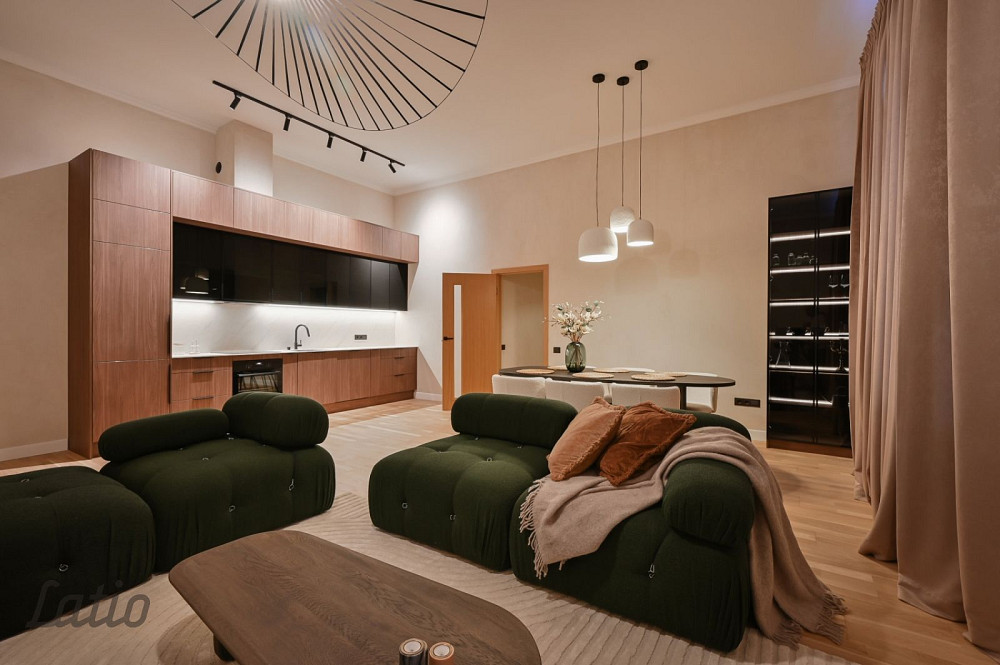 Dzīvoklis ir pilnībā mēbelēts un aprīkots ar augstvērtīgām dizaina mēbelēm un modernu sadzīves tehniku, tāpēc var ievākties uzreiz bez papildu ieguldījumiem. Augstie griesti, lielizmēra logi un dabīgā koka parketa grīdas rada gaismas pilnu, plašu un reprezentablu atmosfēru.