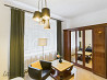 Guļamistaba aprīkota ar ērtu divguļamo gultu, ietilpīgu skapi, atpūtas krēslu un nelielu darba zonu.