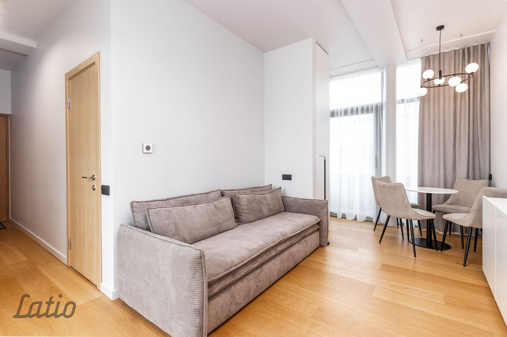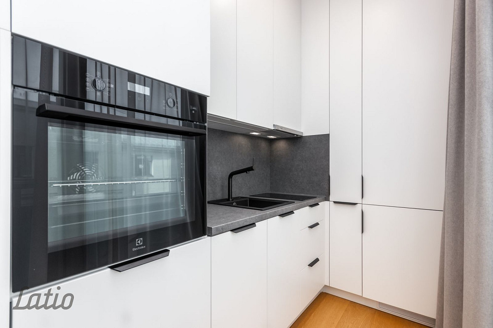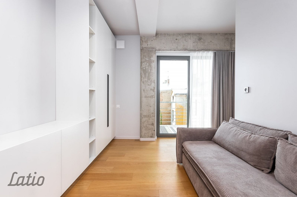 Izīrē pilnībā aprīkotu un mēbelētu studijas tipa dzīvokli pašā Rīgas centrā Stabu ielā 2A, jaunajā projektā. Dzīvoklis ir ar modernu interjeru, diviem balkoniem (12.6 m un 4 m), liftu un A klases energoefektivitāti ļoti zemi komunālie maksājumi.