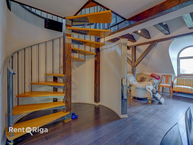 Izsmalcināts divlīmeņu dzīvoklis renovētā ēkā pašā Rīgas sirdī. Tiešs skatu uz