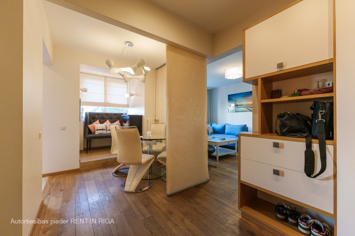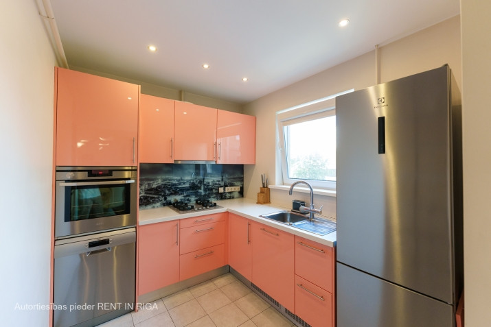 Kvalitatīvs, mājīgs un aprīkots 3 istabu dzīvoklis klusā iekšpagalma mājā. Ērts dzīvokļa plānojums: ieejas koridors, saimnieciskā telpa, virtuve, neliela ēdamzona, plaša viesistaba, divas izolētas guļamistabas, vienā no tām - buduāra telpa (var tikt izmantota kā papildus telpa, piemēram, ģerbtuve), vannas istaba ar vannu un atsevišķi sanitārais mezgls. Plaši iebūvēti skapji, pēc pasūtījuma gatavotas mēbeles. Virtuvē - kvalitatīva un jauna sadzīves tehnika. Tikai ilgtermiņa īrei (12+ mēneši). Papildus maksājumi: komunālie maksājumi un apsaimniekošana (no 90 EUR (vasaras mēnešos) -280 EUR (ziemas mēnešos). Bezmaksas stāvvietas iespējamas pagalmā vai maksas stāvlaukumi tuvējā apkārtnē. Lieliska lokācija: sabiedriskais transports 5 minūšu gājienā, vairāki veikali (tostarp t/c Aleja), aptieka, sporta klubs, tirdziņš, skolas un bērnudārzi.