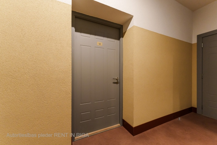Mēbelēts Studio dzīvoklis Rīgas Centrā. Tas atrodās restaurētā vēsturiskā jūgendstila