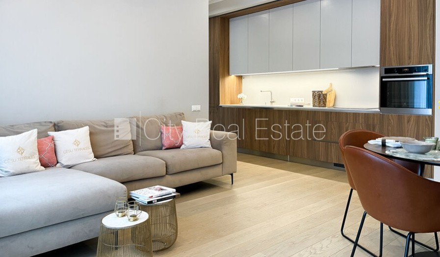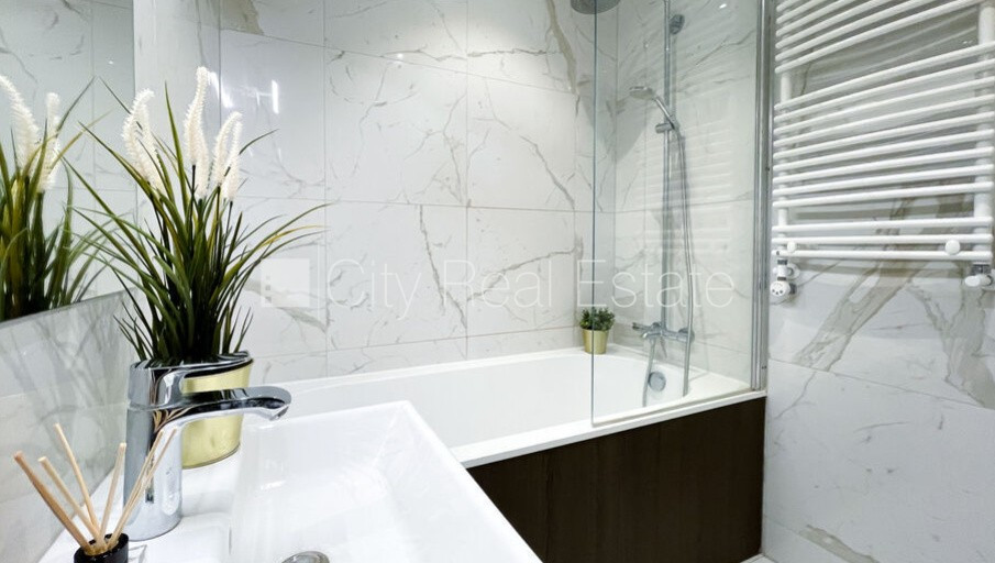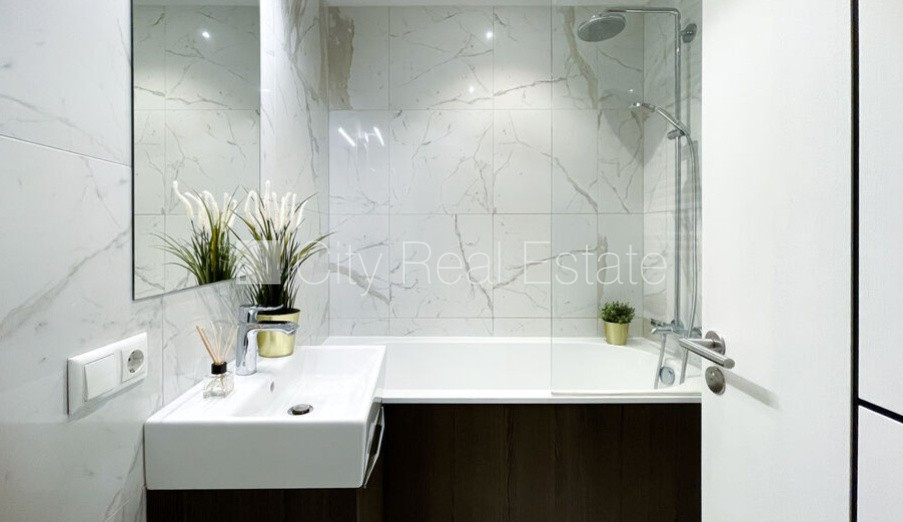 Jaunceltne, labiekārtota apzaļumota teritorija, vieta automašīnai, pazemes autostāvvieta, ir lifts, balkons, istabas izolētas 1 gab., studio tipa, virtuve apvienota ar viesistabu, augstie griesti, radiatori ar termoregulatoriem, automatizēta apkures sistēma, apkures skaitītāji, individuāla apkures sistēmas uzskaite, pilnā apdare, lielie skatlogi, parketa grīda, sanitārais mezgls apvienots, vanna, iebūvēta virtuves iekārta, iebūvēti sienas skapji, ledusskapis, trauku mazgājamā mašīna, indukcijas plīts, cepeškrāsns, tvaika nosūcējs, veļas mašīna, signalizācija, diennakts videonovērošana, kāpņu telpā koda atslēga, atbrīvots, stratēģiski izdevīga vieta, CITY REAL ESTATE ID - 516601