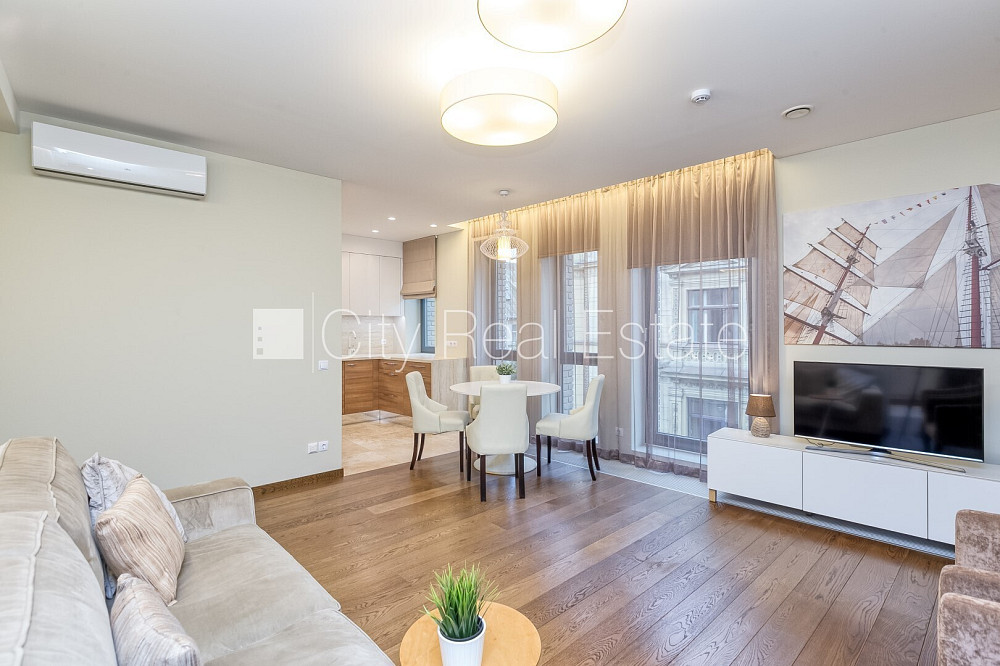 Jaunceltne, labiekārtota apzaļumota teritorija, bruģēts piebraucamais ceļš, garāža vienai automašīnai, garāžas vārti aprīkoti ar automatizētu atvēršanās un aizvēršanās sistēmu, iespēja nomāt pazemes autostāvvietu, luksuss apartamenti , ir lifts, gaisa kondicionēšanas sistēma, guļamistabu skaits 2 gab., studio tipa, virtuve apvienota ar viesistabu, augstie griesti, automatizēta apkures sistēma, koka stikla pakešu logi, krāsotas sienas, jauna santehnika, parketa grīda, flīžu grīdas segums, divi sanitārie mezgli, dušas kabīne, iebūvēta virtuves iekārta, iebūvēti sienas skapji, divguļamā gulta, galds, krēsli, gaisa kondicionieris, ledusskapis, trauku mazgājamā mašīna, elektriskā plīts, cepeškrāsns, veļas mašīna, optiskais internets, signalizācija, kāpņu telpā koda atslēga, līdz parkam 100 m, stratēģiski izdevīga vieta, bez dzīvniekiem, CITY REAL ESTATE ID - 510603
