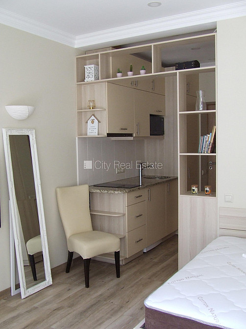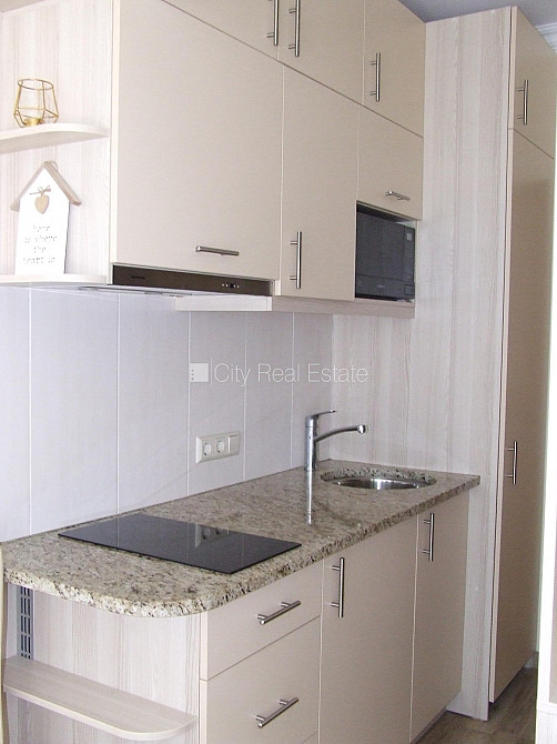 Jaunceltne, labiekārtota apzaļumota teritorija, slēgta teritorija, pirmais stāvs ar dārzu, logi vērsti uz pagalma pusi, studio tipa, virtuve apvienota ar istabu, centrālā apkure, plastikāta stikla pakešu logi, lamināta parketa grīda, flīžu grīdas segums, sanitārais mezgls apvienots, vanna, iebūvēta virtuves iekārta, dīvāns, gulta , televizors, ledusskapis, elektriskā plīts, mikroviļņu krāsns, veļas mašīna, internets, diennakts videonovērošana, slēgta kāpņu telpa, kāpņu telpā koda atslēga, izīrē ar visu bildēs redzamo aprīkojumu, atbrīvots, stratēģiski izdevīga vieta, CITY REAL ESTATE ID - 506947