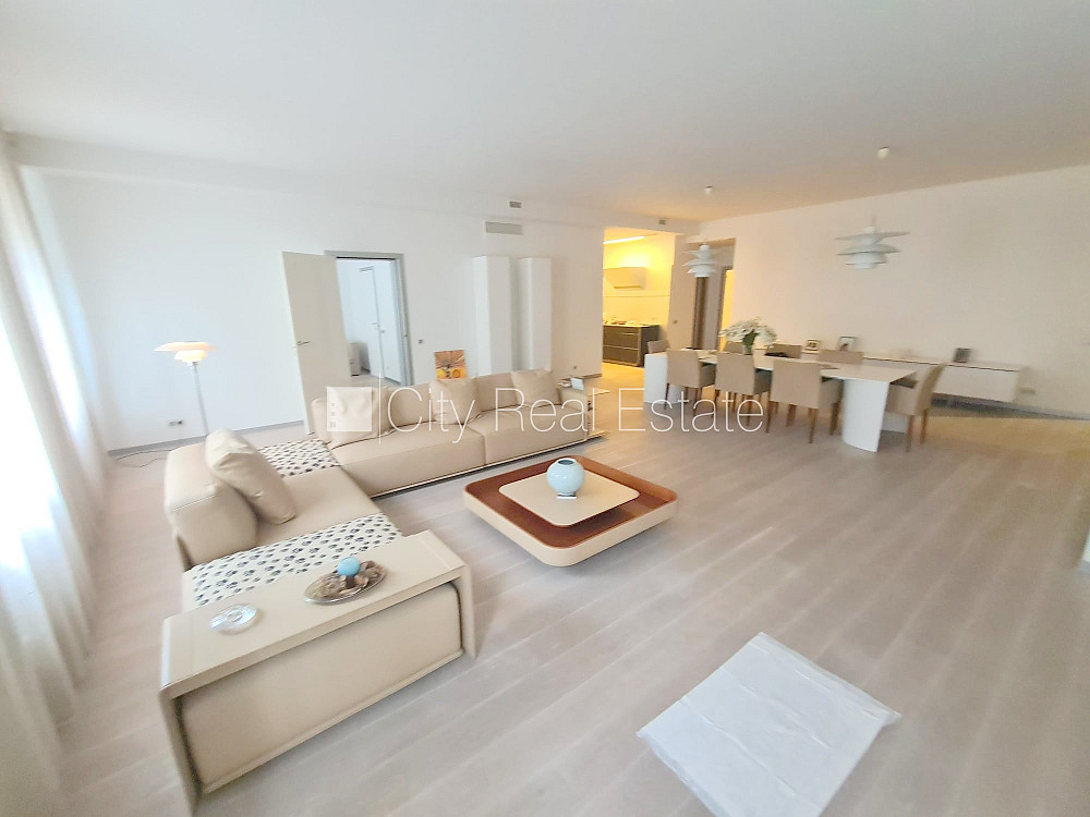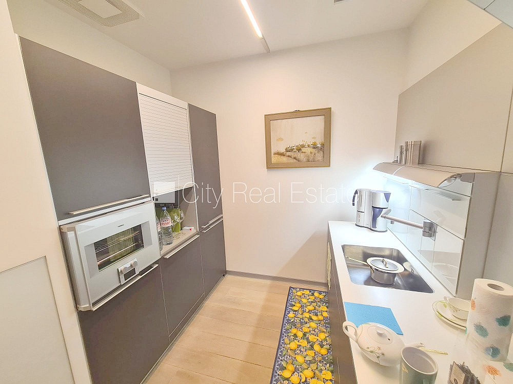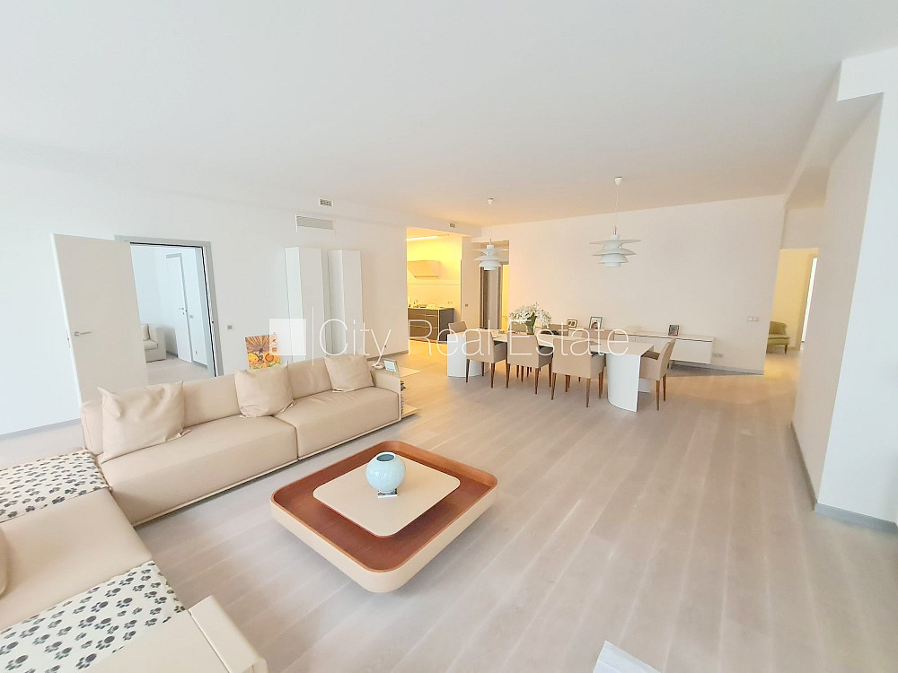 Jaunceltne, apsargāta teritorija, objektu apsargā fiziskā apsardze, ieeja no ielas, luksuss apartamenti , ir lifts, kāpņu telpa pēc kapitālā remonta, logi vērsti mājas abās pusēs, plašs skats no loga, gaisa kondicionēšanas sistēma, istabas izolētas, studio tipa, virtuve apvienota ar istabu, garderobe, kabinets, veļas mazgātava, augstie griesti, centrālā apkure, apkures skaitītāji, individuāla apkures sistēmas uzskaite, pilnā apdare, alumīnija stikla pakešu logi, krāsotas sienas, jauna santehnika, parketa grīda, trīs sanitārie mezgli, vanna, dušas kabīne, tualete, iebūvēta virtuves iekārta, iebūvēti sienas skapji, stūra dīvāns, gulta , virtuves galds, krēsli, televizors, ledusskapis, trauku mazgājamā mašīna, elektriskā plīts, cepeškrāsns, tvaika nosūcējs, veļas mašīna, optiskais internets, signalizācija, diennakts videonovērošana, video domofons, diennakts apsardze, izīrē ar visu bildēs redzamo aprīkojumu, uz 1 gadu, uz 2 gadiem, ar iespēju pagarināt līgumu, atbrīvots, CITY REAL ESTATE ID - 515497