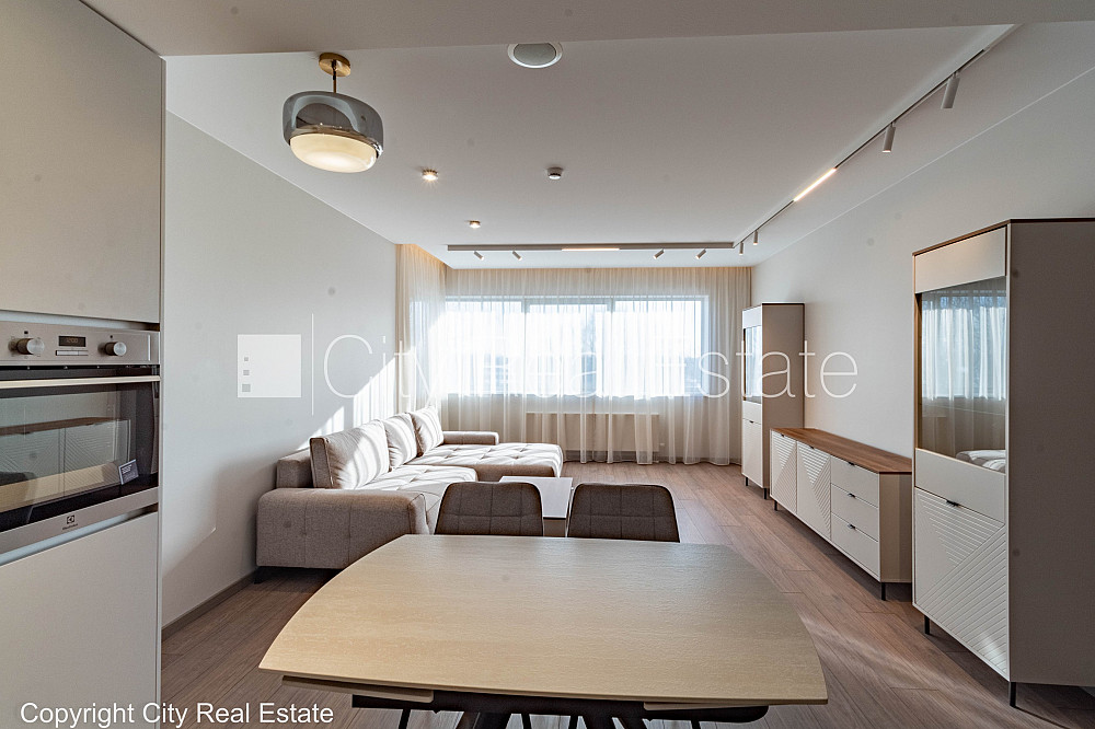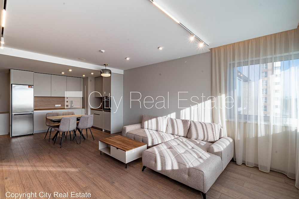 Jaunceltne, viena kvadrātmetra apsaimniekošanas maksa mēnesī 1,25 EUR, energo efektīva māja, iespēja nomāt pazemes autostāvvietu, ieeja no ielas, pagalmā bērnu spēļu laukums, ir lifts, plašs skats no loga, guļamistabu skaits 1 gab., studio tipa, virtuve apvienota ar viesistabu, garderobe, radiatori ar termoregulatoriem, apkures skaitītāji, individuāla apkures sistēmas uzskaite, pilnā apdare, apsildāma grīda vannas istabā, lielie skatlogi, metāla durvis, jauna santehnika, lamināta parketa grīda, flīžu grīdas segums, sanitārais mezgls apvienots, vanna, iebūvēta virtuves iekārta, iebūvēti sienas skapji, stūra dīvāns, divguļamā gulta, virtuves galds, krēsli, drēbju skapis, kumode, ledusskapis, trauku mazgājamā mašīna, elektriskā plīts, cepeškrāsns, veļas mašīna, diennakts videonovērošana, video domofons, diennakts apsardze, kāpņu telpā koda atslēga, izīrē ar visu bildēs redzamo aprīkojumu, atbrīvots, līdz pilsētas centram 10 km, līdz lidostai 10 km, stratēģiski izdevīga vieta, līdz Baltijas jūrai 20 km, CITY REAL ESTATE ID - 517957