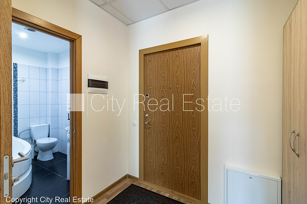 Jaunceltne, pazemes autostāvvieta, ir lifts, kāpņu telpa pēc kapitālā remonta, viena istaba izolēta, studio tipa, virtuve apvienota ar viesistabu, centrālā apkure, pilnā apdare, apsildāmas grīdas, plastikāta stikla pakešu logi, metāla durvis, krāsotas sienas, parketa grīda, flīžu grīdas segums, sanitārais mezgls apvienots, vanna, stūra dīvāns, divguļamā gulta, galds, krēsli, skapis, ledusskapis, elektriskā plīts, cepeškrāsns, tvaika nosūcējs, veļas mašīna, internets, kāpņu telpā koda atslēga, izvēloties šo īpašumu, komisijas maksa par starpniecības pakalpojumiem ir vienāda ar vienu pusi (50%) no šī īpašuma viena mēneša īres maksas, CITY REAL ESTATE ID - 518023
