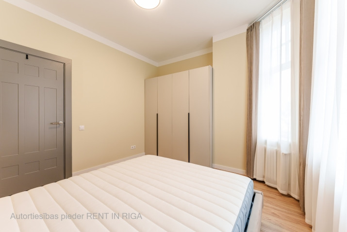 Pilnībā mēbelēts 2-istabu dzīvoklis jūgendstila ēkā Rīgas Centrā. Krišjāņa Valdemāra ielā 61 soļu attālumā no Klusā centra. Ēka ir pilnībā renovēta, siltināta, aprīkota ar KONE liftu un videonovērošanu, nodrošinot augstu energoefektivitāti un drošību. Slēgta, labiekārtota teritorija. Pieejams 24/7 klientu serviss, pārskatāma rēķinu sistēma un iespēja izmantot uzkopšanas pakalpojumus. Dzīvoklis sastāv no viesistabas, kas apvienota ar virtuves zonu, guļamistabas un vannasistabas ar dušu. Aprīkots ar iebūvētu virtuves iekārtu, skapjiem un gaismas ķermeņiem. Īres maksa 750 EUR/mēn. Papildu: fiksēta apsaimniekošanas maksa 70 EUR/mēn un komunālie maksājumi pēc individuāla patēriņa dzīvoklī. Pie līguma slēgšanas tiek prasīts 2 mēnešu drošības depozīts. Minimālais īres termiņš 1 gads.