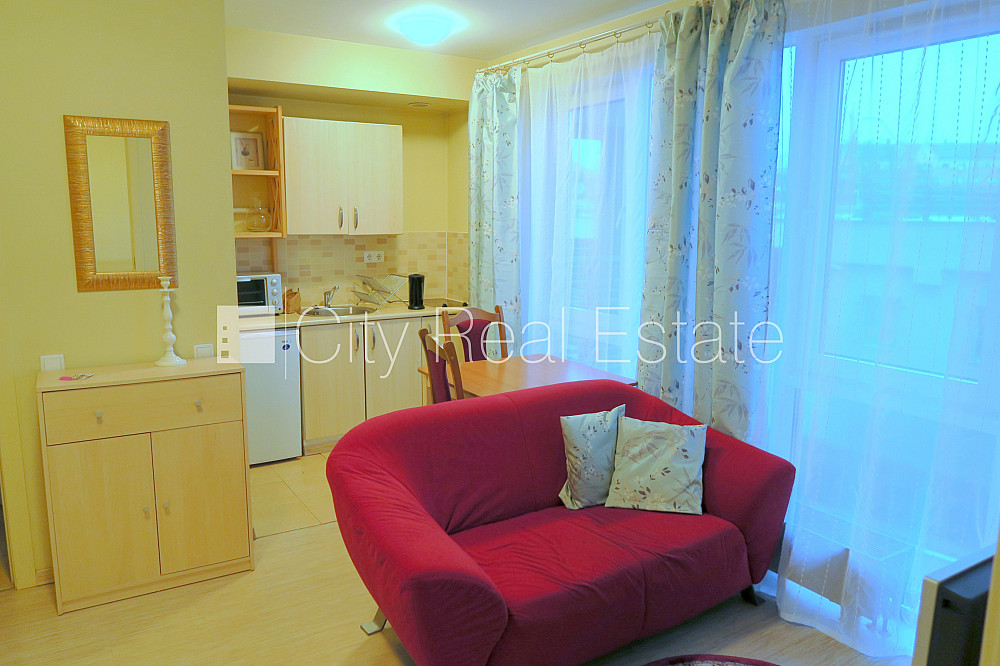 Projekts - Centra Nams, jaunceltne, labiekārtots apzaļumots pagalms, iespēja nomāt autostāvvietu, pazemes autostāvvieta, apsargāta teritorija, ir lifts, balkons, viena istaba izolēta, studio tipa, virtuve apvienota ar istabu, halle, pilnā apdare, plastikāta stikla pakešu logi, krāsotas sienas, jauna santehnika, lamināta parketa grīda, flīžu grīdas segums, sanitārais mezgls apvienots, dušas kabīne, iebūvēta virtuves iekārta, iebūvēti sienas skapji, dīvāns, divguļamā gulta, rakstāmgalds, drēbju skapis, gaisa kondicionieris, televizors, ledusskapis, elektriskā plīts, mikroviļņu krāsns, veļas mašīna, internets, namrunis, diennakts videonovērošana, diennakts apsardze, kāpņu telpā koda atslēga, minimālais īres termiņš, atbrīvo februārī, līdz upei, stratēģiski izdevīga vieta, CITY REAL ESTATE ID - 428202