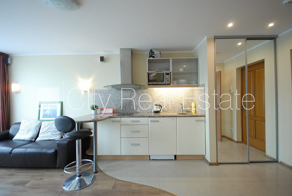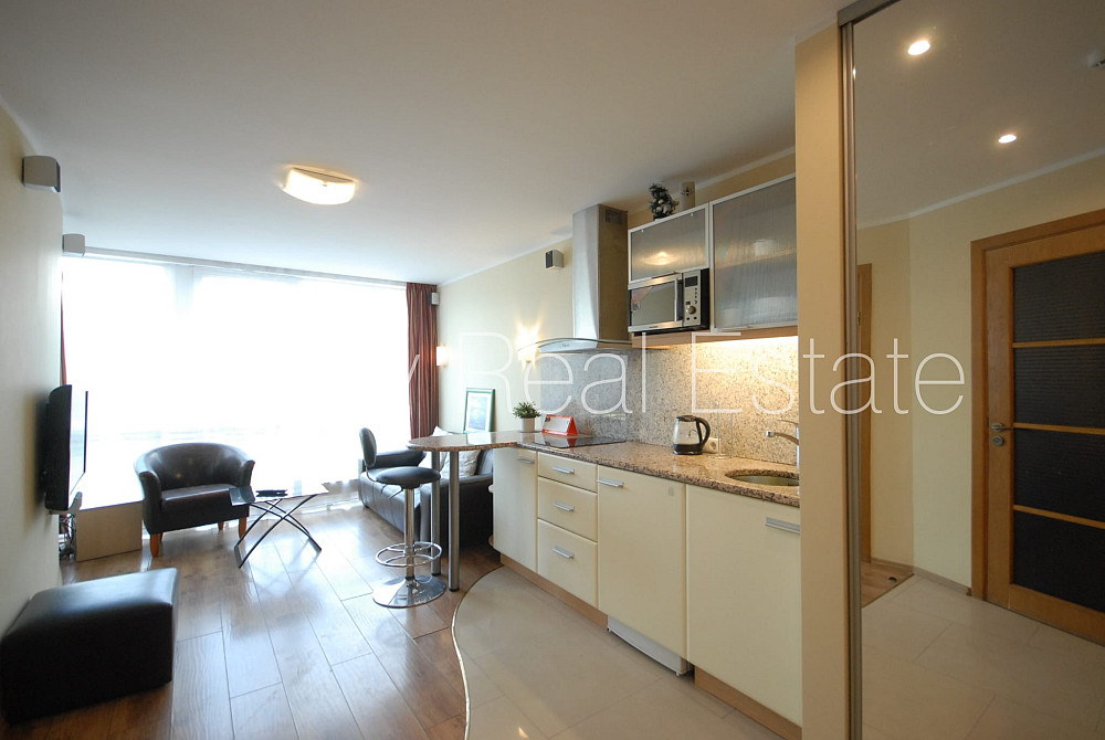 Projekts - Citi Nova, jaunceltne, pagalma māja, labiekārtots apzaļumots pagalms, slēgts pagalms, vieta automašīnai, apsargāta teritorija, ieeja no pagalma, ir lifts, viena istaba izolēta, studio tipa, virtuve apvienota ar istabu, centrālā apkure, pilnā apdare, plastikāta stikla pakešu logi, jauna santehnika, lamināta parketa grīda, sanitārais mezgls apvienots, vanna, iebūvēta virtuves iekārta, dīvāns, divguļamā gulta, žurnālu galdiņš, vienvietīgais atpūtas krēsls, bāra lete, bāra krēsli, drēbju skapis, četrdurvju skapis, trauku skapis, spogulis, ledusskapis, elektriskā plīts, tvaika nosūcējs, mikroviļņu krāsns, veļas mašīna, mājas kinozāle, signalizācija, diennakts videonovērošana, diennakts apsardze, kāpņu telpā koda atslēga, izīrē ar visu bildēs redzamo aprīkojumu, izvēloties šo īpašumu, komisijas maksa par starpniecības pakalpojumiem ir vienāda ar vienu pusi (50%) no šī īpašuma viena mēneša īres maksas, CITY REAL ESTATE ID - 444337