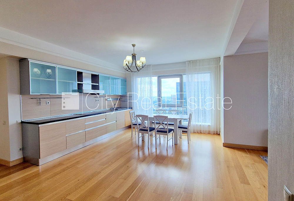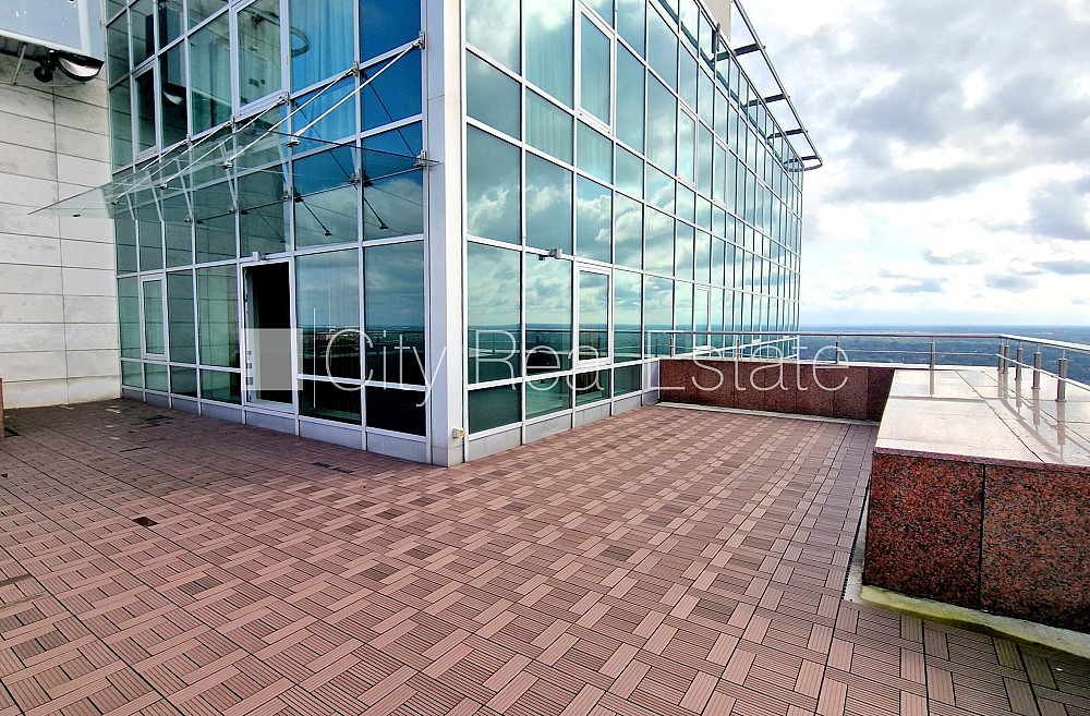 Projekts - Panorama Plaza, jaunceltne, labiekārtota apzaļumota teritorija, iespēja nomāt pazemes autostāvvietu, pazemes autostāvvieta, apsargāta teritorija, pagalmā bērnu spēļu laukums, luksuss apartamenti 180 m2, ir lifts, divas terases, plašs skats no loga, guļamistabu skaits 2 gab., viesistaba, studio tipa, virtuve apvienota ar viesistabu, garderobe, halle, automatizēta apkures sistēma, apkures skaitītāji, individuāla apkures sistēmas uzskaite, pilnā apdare, lielie skatlogi, alumīnija stikla pakešu logi, parketa grīda, flīžu grīdas segums, divi sanitārie mezgli, vanna, dušas kabīne, iebūvēta virtuves iekārta, iebūvēti sienas skapji, stūra dīvāns, divguļamā gulta, galds, krēsli, ledusskapis, trauku mazgājamā mašīna, elektriskā plīts, cepeškrāsns, veļas mašīna, optiskais internets, signalizācija, namrunis, diennakts apsardze, atbrīvots, stratēģiski izdevīga vieta, CITY REAL ESTATE ID - 428258