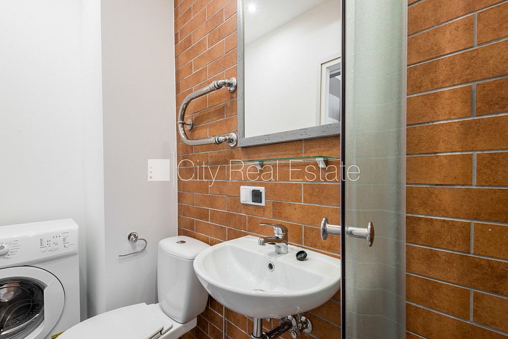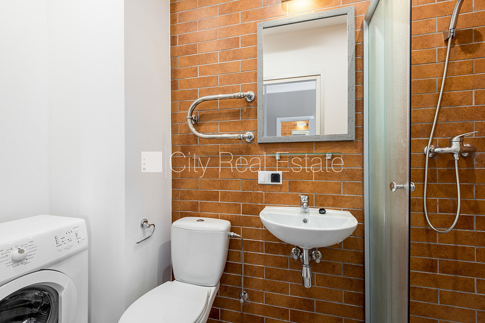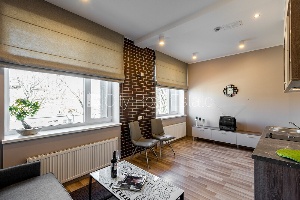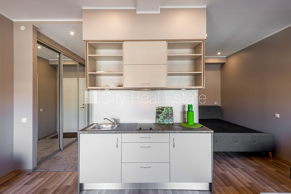 Renovēta māja, labiekārtota apzaļumota teritorija, kāpņu telpa pēc kapitālā remonta, studio tipa, virtuve apvienota ar istabu, radiatori ar termoregulatoriem, gāzes apkure, pilnā apdare, apsildāma grīda vannas istabā, plastikāta stikla pakešu logi, jauna santehnika, lamināta parketa grīda, sanitārais mezgls apvienots, dušas kabīne, iebūvēta virtuves iekārta, iebūvēti sienas skapji, dīvāns, divguļamā gulta, žurnālu galdiņš, krēsli, ledusskapis, elektriskā plīts, tvaika nosūcējs, veļas mašīna, internets, kāpņu telpā koda atslēga, atbrīvo novembrī, slēdzot īres līgumu, Jums būs jāmaksā par pirmo īres mēnesi , kā arī jāiemaksā drošības depozīts viena mēneša īres maksas apmērā, komisijas maksa par starpniecības pakalpojumiem nav jāmaksā, CITY REAL ESTATE ID - 426520