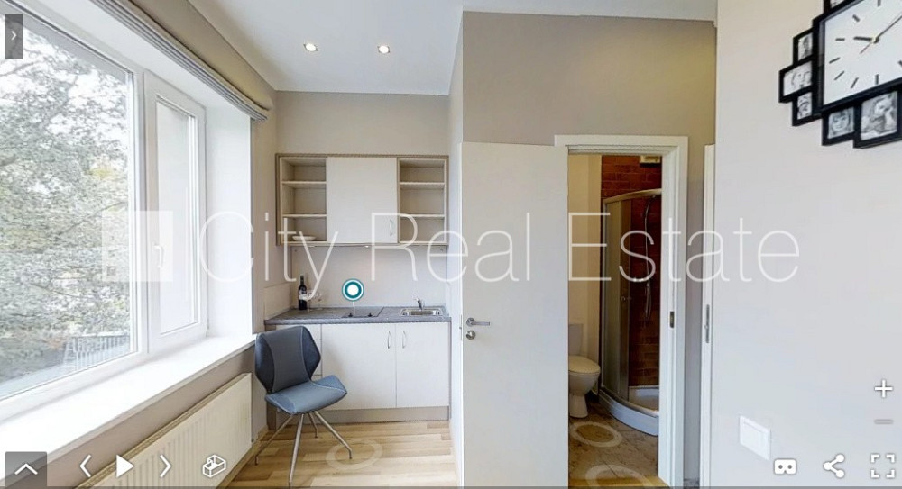 Renovēta māja, labiekārtota apzaļumota teritorija, vieta automašīnai, studio tipa, virtuve apvienota ar istabu, gāzes apkure, pilnā apdare, apsildāma grīda vannas istabā, plastikāta stikla pakešu logi, lamināta parketa grīda, sanitārais mezgls apvienots, dušas kabīne, iebūvēta virtuves iekārta, iebūvēti sienas skapji, divguļamā gulta, rakstāmgalds, žurnālu galdiņš, krēsli, atpūtas krēsli, ledusskapis, elektriskā plīts, tvaika nosūcējs, veļas mašīna, optiskais internets, diennakts videonovērošana, kāpņu telpā koda atslēga, atbrīvo novembrī, slēdzot īres līgumu, Jums būs jāmaksā par pirmo īres mēnesi , kā arī jāiemaksā drošības depozīts viena mēneša īres maksas apmērā, CITY REAL ESTATE ID - 427130