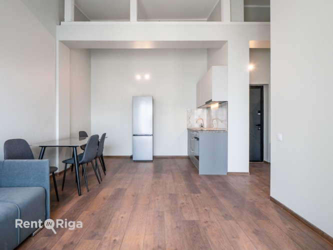Pieejams plašs un gaišs 2 istabu lofta tipa dzīvoklis ar augstajiem griestiem un ērtu plānojumu. Dzīvoklī ir daudz dabīgās gaismas, kā arī patīkams skats uz saulrietu. Dzīvoklis ir pilnībā aprīkots ar mēbelēm un gatavs dzīvošanai. Dzīvoklim ir atsevišķi skaitītāji visiem komunālajiem pakalpojumiem, kā arī apsilde no grīdas, kas parasti nozīmē zemākus komunālos maksājumus. Lokācija ir ļoti mierīga un klusa, bet viss nepieciešamais atrodas tuvumā lielais Rimi ir apmēram 5 minūšu gājiena attālumā, tāpat arī autobusu pieturas. Uz ielas pieejama bezmaksas autostāvvieta, kā arī pagalmā ir iespēja nomāt stāvvietu aiz barjeras. Parakstot līgumu, aģentūras komisija ir 50 % no viena mēneša īres maksas.