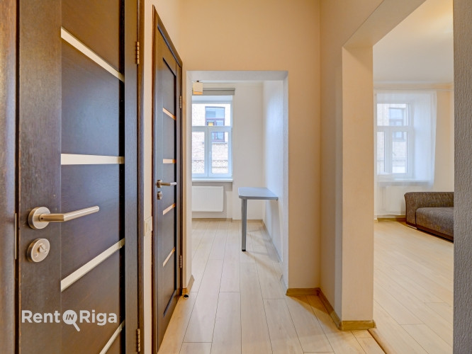 Tiek izīrēts divistabu dzīvoklis centrā sakārtota nama 3. stāvā. Dzīvoklī ir atsevišķa virtuve ar iebūvēto virtuves iekārtu un sadzīves tehniku. Vannas istaba ar dušas kabīni un WC atsevišķi. Apsaimniekošana ir iekļauta īres maksā, komunālie pēc skaitītājiem plus apkure un atkritumu izvešana. Dzīvoklis tiek izīrēts uz gadu, ar iespēju pagarināt līgumu. Drošības nauda ir divu mēnešu īres apmērā.