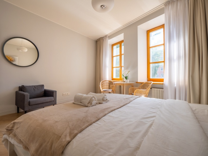 Stilīgs un moderns dzīvoklis Rīgas centrā. Piedāvājumā ir elegants dzīvoklis ar unikālu dizainu, Vecrīga ideālā vietā aktīvai un ērtai dzīvei Rīgas centrā. Galvenās dzīvokļa priekšrocības: Moderns nams ar augstas kvalitātes apdari un dizaina risinājumiem. Ideāla atrašanās vieta: Vecrīga, tirdzniecības centri, kafejnīcas un sabiedriskais transports. Pilnībā mēbelēts: dzīvoklis ir aprīkots ar visu nepieciešamo tehniku (ledusskapis, veļas mašīna u.c.). Automatizēta skaitītāju rādījumu nodošana un siltuma skaitītāji, kas ļauj maksāt tikai par patērēto (vasarā komunālie maksājumi vidēji ~60 EUR, ziemā ~120 EUR). Šī atrašanās vieta ir ideāli piemērota tiem, kas vēlas dzīvot pilsētas sirdī ar ērtu piekļuvi visam nepieciešamajam. Lūdzu, ņemiet vērā, ka dzīvoklim ir papildus vienreizēja aģentūras maksa, kas atbilst 50% no viena īres mēneša maksas.
