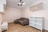 Dzīvoklis ir minimāli mēbelēts, kas ļauj to ērti pielāgot īrnieka vajadzībām. Virtuves zona ir mūsdienīga, ar iebūvētām mēbelēm un tehniku, savukārt mantu uzglabāšanai ir iebūvēts skapis.