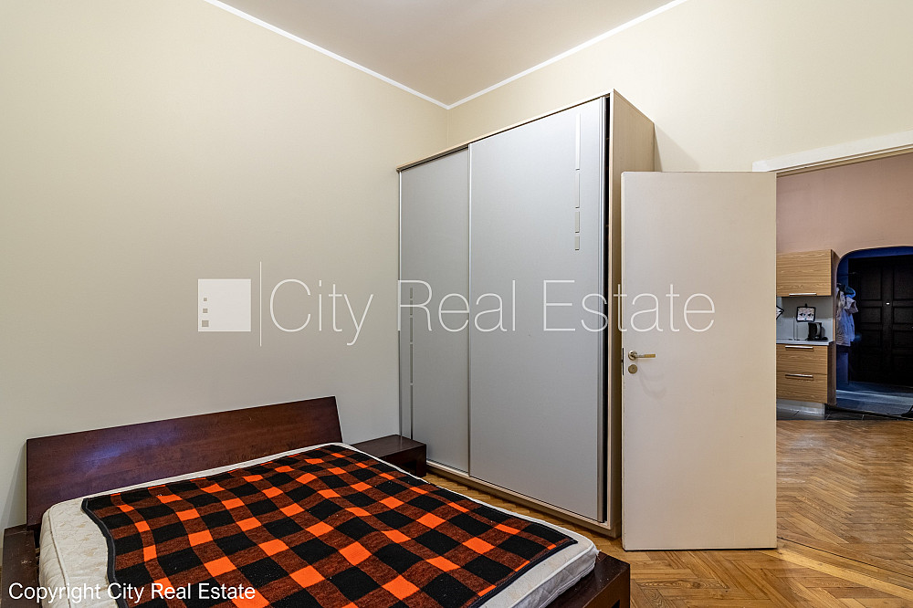 Pagalma ēka, labiekārtota apzaļumota teritorija, bezmaksas stāvvieta pagalmā, viena istaba izolēta, studio tipa, virtuve apvienota ar viesistabu, augstie griesti, gāzes apkure, koka stikla pakešu logi, krāsotas sienas, parketa grīda, sanitārais mezgls apvienots, dušas kabīne, iebūvēta virtuves iekārta, divguļamā gulta, divdurvju skapis, trauku skapis, spogulis, ledusskapis, elektriskā plīts, cepeškrāsns, tvaika nosūcējs, veļas mašīna, slēgta kāpņu telpa, izvēloties šo īpašumu, komisijas maksa par starpniecības pakalpojumiem ir vienāda ar vienu pusi (50%) no šī īpašuma viena mēneša nomas maksas, CITY REAL ESTATE ID - 517858