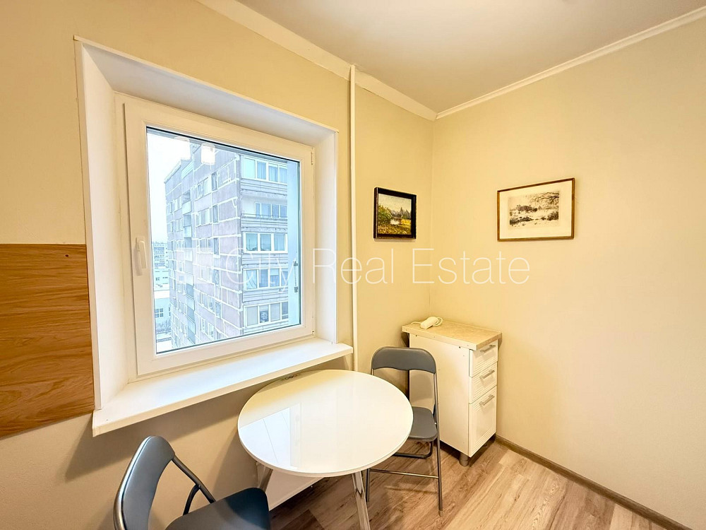 Pagalma ēka, renovēta māja, labiekārtota apzaļumota teritorija, vieta automašīnai, teritorijas stāvlaukums noklāts ar asfaltbetona segumu , ir lifts, kāpņu telpa pēc kosmētiskā remonta, iestiklota lodžija, viena istaba izolēta, virtuve, halle, centrālā apkure, pilnā apdare, lielie skatlogi, plastikāta stikla pakešu logi, metāla durvis, izlīmētas tapetes, krāsotas sienas, jauna santehnika, lamināta parketa grīda, flīžu grīdas segums, sanitārais mezgls apvienots, dušas kabīne, iebūvēta virtuves iekārta, dīvāns, galds, virtuves galds, žurnālu galdiņš, krēsli, atpūtas krēsli, virtuves krēsli, drēbju skapis, kumode, spogulis, ledusskapis, elektriskā plīts, cepeškrāsns, tvaika nosūcējs, veļas mašīna, slēgta kāpņu telpa, kāpņu telpā koda atslēga, izīrē ar visu bildēs redzamo aprīkojumu, minimālais īres termiņš 1 gads, atbrīvots, stratēģiski izdevīga vieta, CITY REAL ESTATE ID - 517878