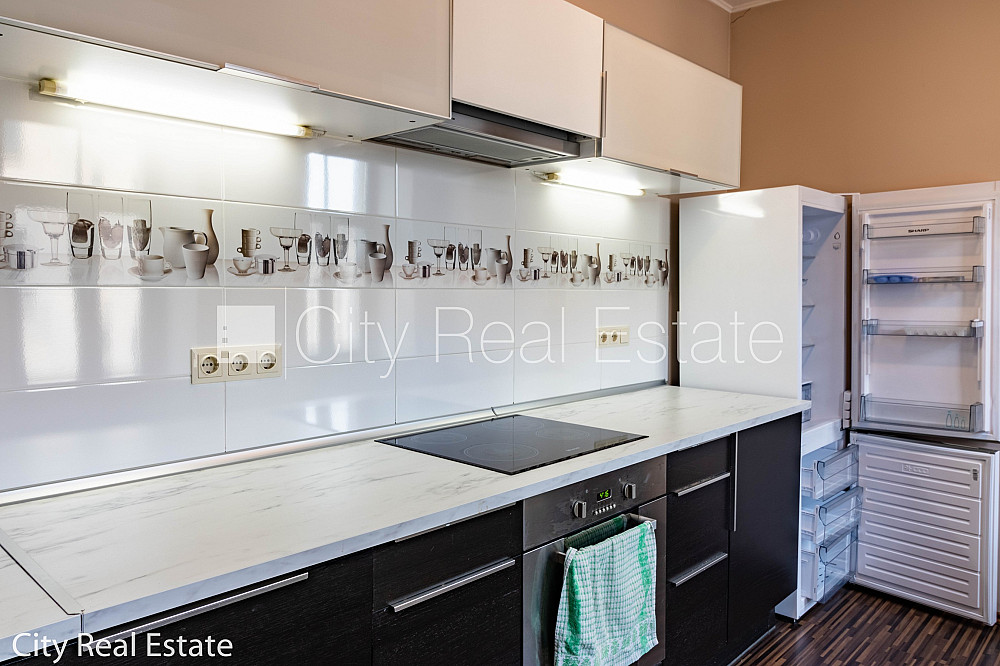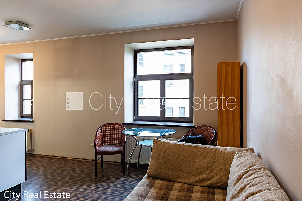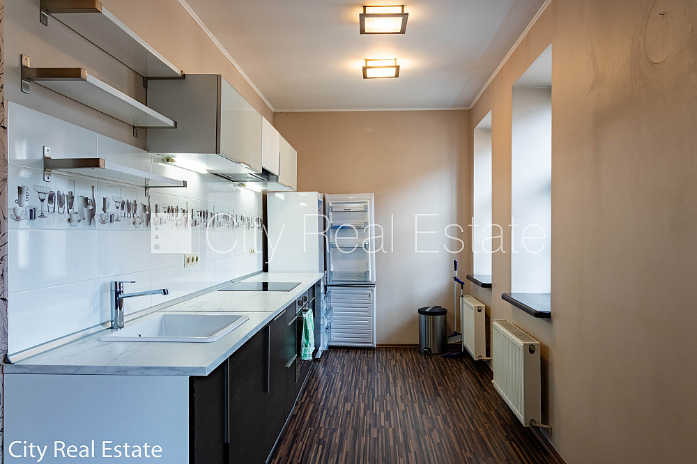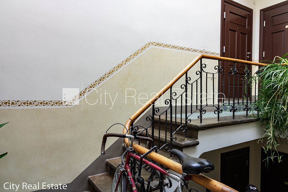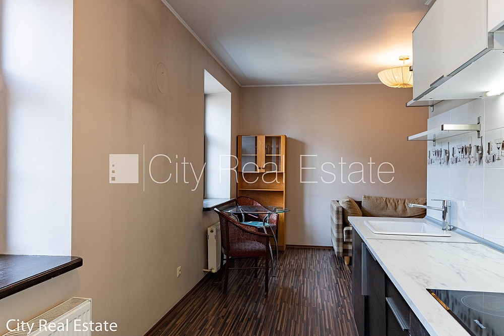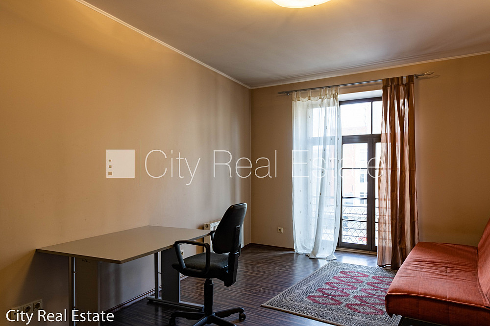 Pagalma ēka, renovēta māja, labiekārtota apzaļumota teritorija, iespēja nomāt autostāvvietu, ieeja no pagalma, kāpņu telpa pēc kapitālā remonta, logi vērsti uz ielas pusi, guļamistabu skaits 2 gab., studio tipa, virtuve apvienota ar viesistabu, halle, augstie griesti, centrālā apkure, pilnā apdare, koka stikla pakešu logi, metāla durvis, izlīmētas tapetes, krāsotas sienas, jauna santehnika, parketa grīda, flīžu grīdas segums, sanitārais mezgls atsevišķs, dušas kabīne, bidē, iebūvēta virtuves iekārta, iebūvēti sienas skapji, dīvāns, stūra dīvāns, divguļamā gulta, galds, rakstāmgalds, krēsli, trauku skapis, spogulis, ledusskapis, trauku mazgājamā mašīna, elektriskā plīts, cepeškrāsns, tvaika nosūcējs, veļas mašīna, internets, slēgta kāpņu telpa, minimālais īres termiņš 1 gads, stratēģiski izdevīga vieta, CITY REAL ESTATE ID - 515626