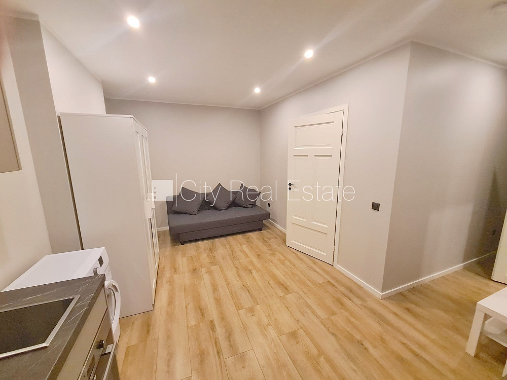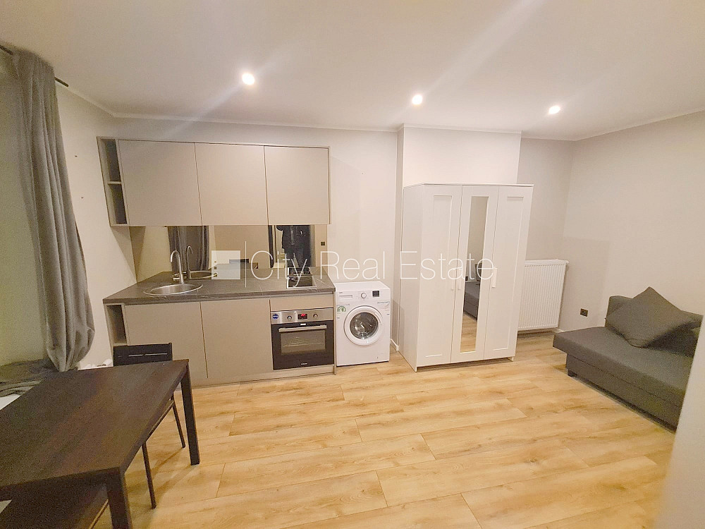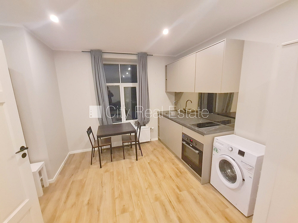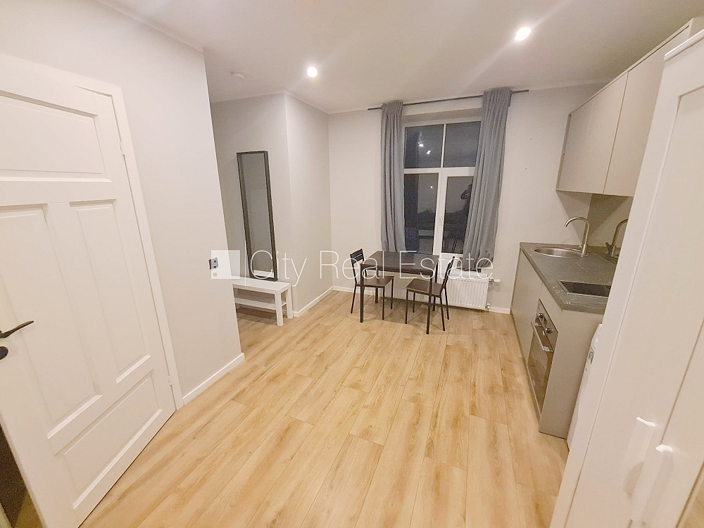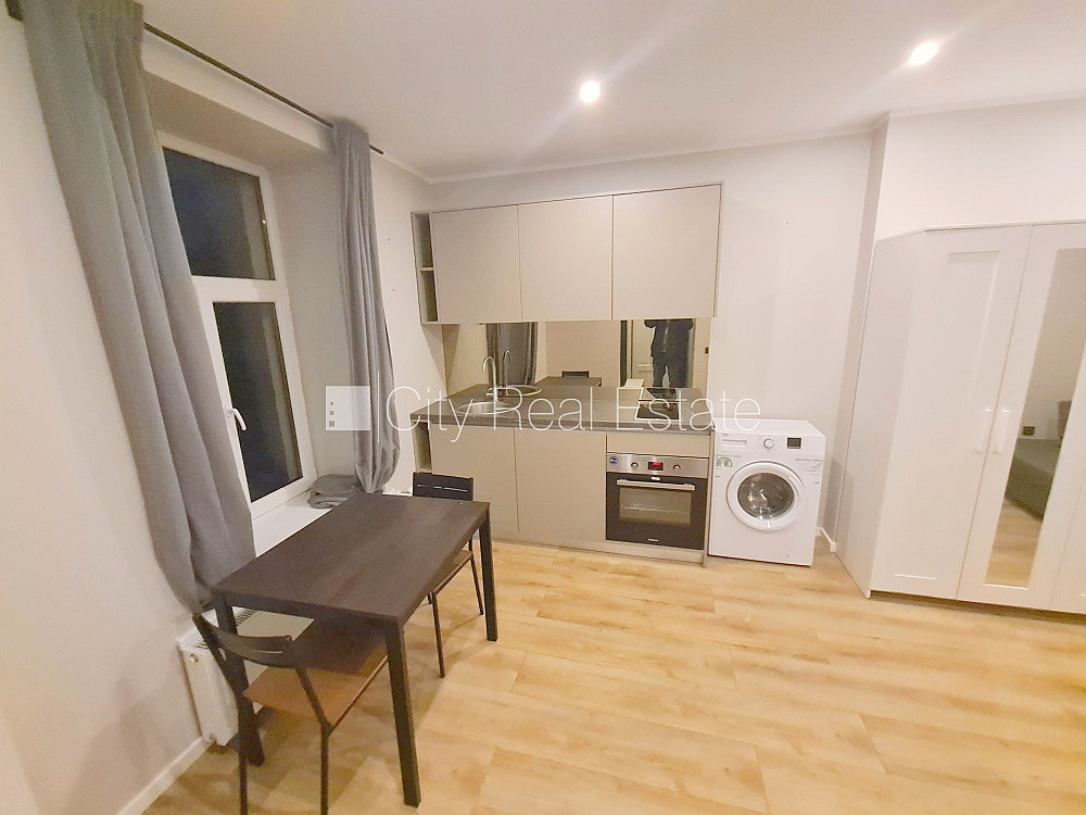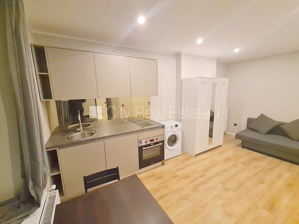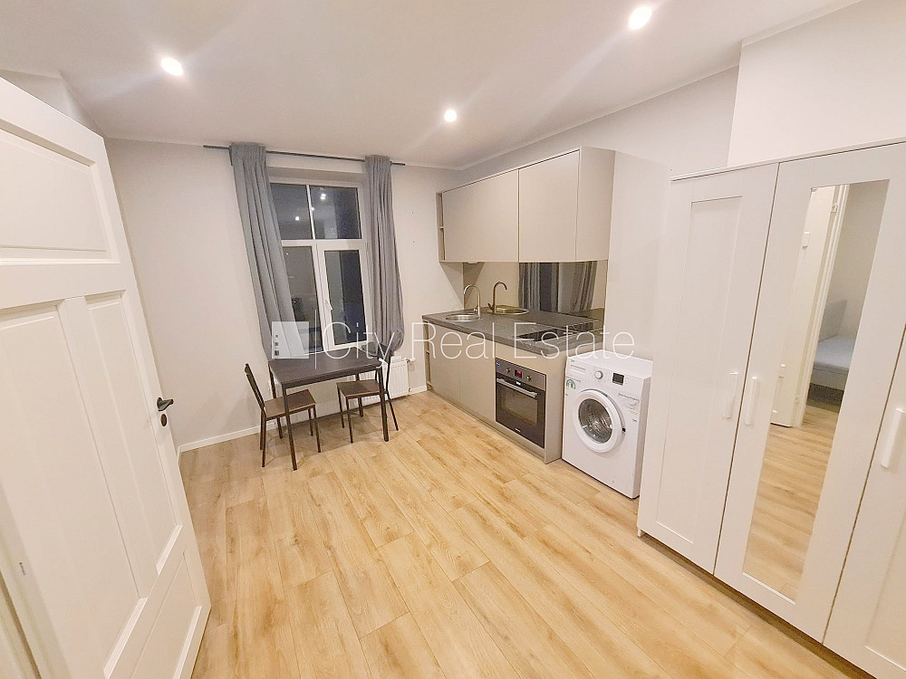 Pagalma ēka, renovēta māja, slēgts pagalms, ieeja no ielas un pagalma, kāpņu telpa pēc kapitālā remonta, logi vērsti uz pagalma pusi, logi vērsti mājas abās pusēs, guļamistabu skaits 1 gab., studio tipa, virtuve apvienota ar istabu, centrālā apkure, pilnā apdare, plastikāta stikla pakešu logi, krāsotas sienas, jauna santehnika, lamināta parketa grīda, flīžu grīdas segums, sanitārais mezgls apvienots, dušas kabīne, tualete, iebūvēta virtuves iekārta, izvelkamais stūra dīvāns, gulta , virtuves galds, krēsli, skapis, ledusskapis, elektriskā plīts, cepeškrāsns, tvaika nosūcējs, veļas mašīna, slēgta kāpņu telpa, izīrē ar visu bildēs redzamo aprīkojumu, atbrīvots, slēdzot īres līgumu, Jums būs jāmaksā par pirmo īres mēnesi , kā arī jāiemaksā drošības depozīts viena mēneša īres maksas apmērā, izvēloties šo īpašumu, komisijas maksa par starpniecības pakalpojumiem ir vienāda ar vienu pusi (50%) no šī īpašuma viena mēneša īres maksas, CITY REAL ESTATE ID - 514694