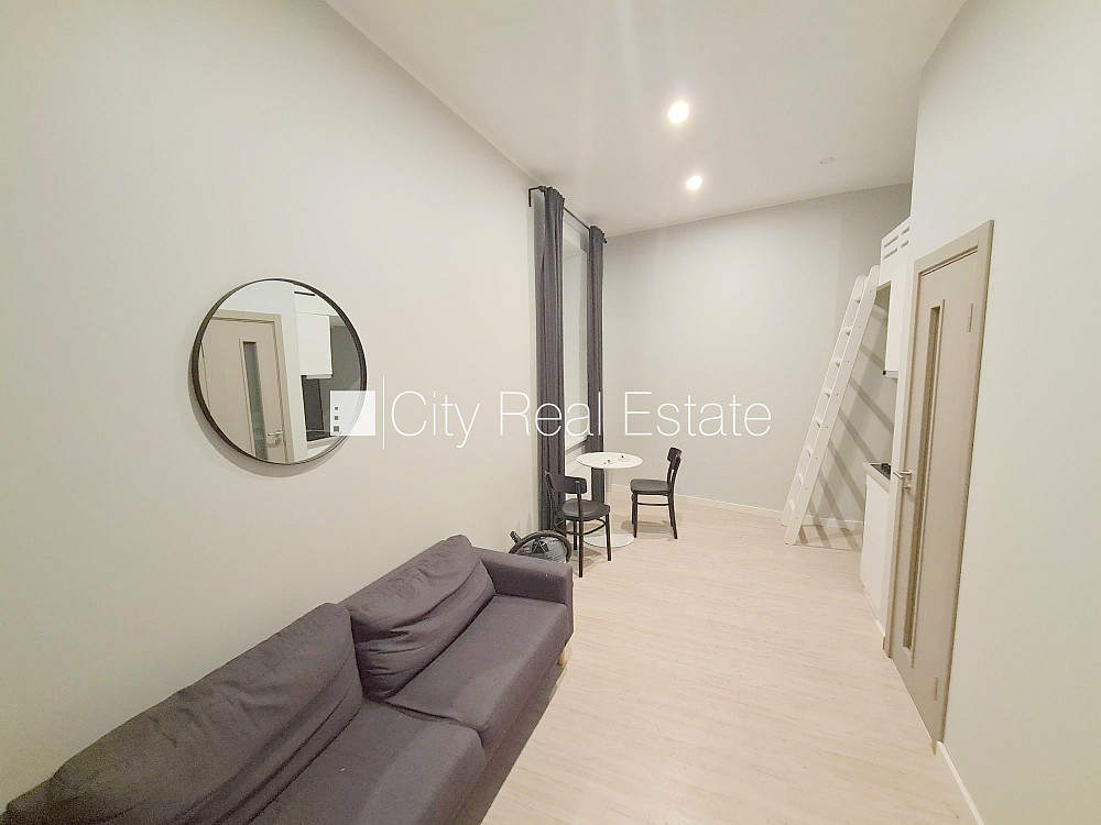 Pagalma ēka, renovēta māja, slēgts pagalms, ieeja no ielas un pagalma, kāpņu telpa pēc kapitālā remonta, logi vērsti uz pagalma pusi, divstāvīgs, studio tipa, virtuve apvienota ar istabu, augstie griesti, centrālā apkure, pilnā apdare, plastikāta stikla pakešu logi, krāsotas sienas, jauna santehnika, lamināta parketa grīda, flīžu grīdas segums, sanitārais mezgls apvienots, dušas kabīne, tualete, iebūvēta virtuves iekārta, dīvāns, virtuves galds, krēsli, skapis, ledusskapis, elektriskā plīts, cepeškrāsns, tvaika nosūcējs, veļas mašīna, slēgta kāpņu telpa, izīrē ar visu bildēs redzamo aprīkojumu, uz 1 gadu, ar iespēju pagarināt līgumu, atbrīvo novembrī, slēdzot īres līgumu, Jums būs jāmaksā par pirmo īres mēnesi , kā arī jāiemaksā drošības depozīts viena mēneša īres maksas apmērā, izvēloties šo īpašumu, komisijas maksa par starpniecības pakalpojumiem ir vienāda ar vienu pusi (50%) no šī īpašuma viena mēneša īres maksas, CITY REAL ESTATE ID - 513672