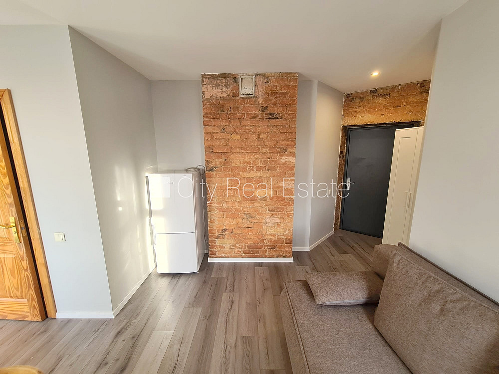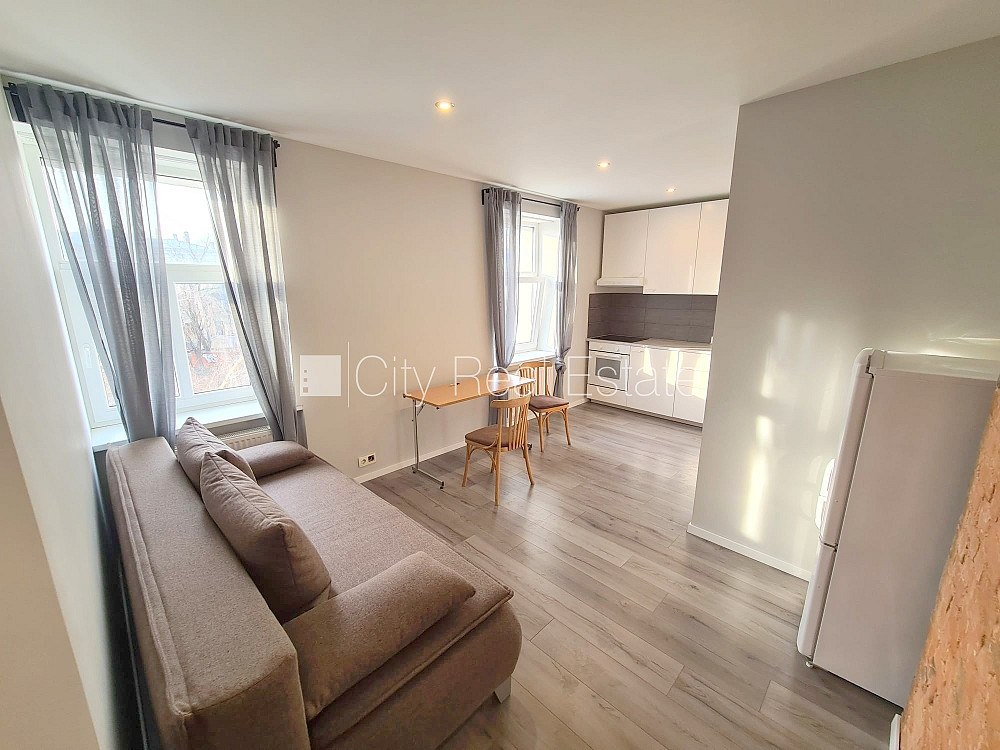 Pagalma ēka, renovēta māja, slēgts pagalms, ieeja no ielas un pagalma, kāpņu telpa pēc kosmētiskā remonta, logi vērsti uz ielas pusi, studio tipa, virtuve apvienota ar istabu, augstie griesti, centrālā apkure, pilnā apdare, plastikāta stikla pakešu logi, krāsotas sienas, lamināta parketa grīda, flīžu grīdas segums, sanitārais mezgls apvienots, dušas kabīne, tualete, iebūvēta virtuves iekārta, dīvāns, virtuves galds, krēsli, skapis, ledusskapis, elektriskā plīts, cepeškrāsns, tvaika nosūcējs, veļas mašīna, slēgta kāpņu telpa, izīrē ar visu bildēs redzamo aprīkojumu, atbrīvots, slēdzot īres līgumu, Jums būs jāmaksā par pirmo īres mēnesi , kā arī jāiemaksā drošības depozīts viena mēneša īres maksas apmērā, izvēloties šo īpašumu, komisijas maksa par starpniecības pakalpojumiem ir vienāda ar vienu pusi (50%) no šī īpašuma viena mēneša īres maksas, CITY REAL ESTATE ID - 435644