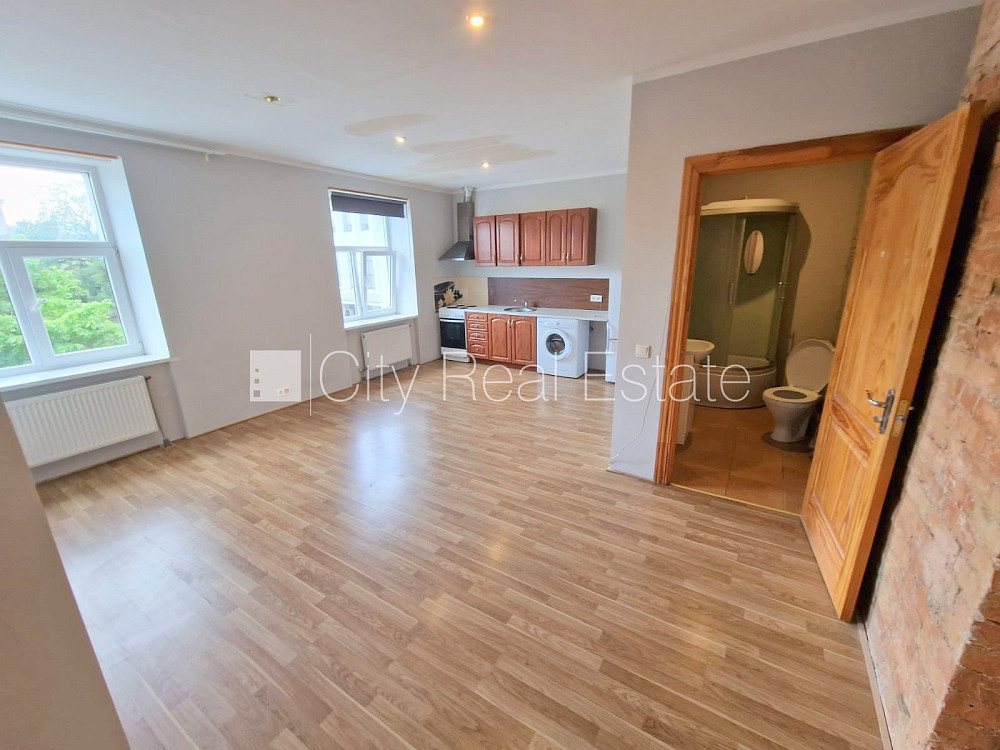 Pagalma ēka, renovēta māja, slēgts pagalms, ieeja no ielas un pagalma, kāpņu telpa pēc kosmētiskā remonta, logi vērsti uz ielas pusi, plašs skats no loga, studio tipa, virtuve apvienota ar istabu, augstie griesti, centrālā apkure, pilnā apdare, plastikāta stikla pakešu logi, krāsotas sienas, jauna santehnika, lamināta parketa grīda, sanitārais mezgls apvienots, dušas kabīne, tualete, iebūvēta virtuves iekārta, ledusskapis, elektriskā plīts, cepeškrāsns, tvaika nosūcējs, veļas mašīna, diennakts videonovērošana, atbrīvots, slēdzot īres līgumu, Jums būs jāmaksā par pirmo īres mēnesi , kā arī jāiemaksā drošības depozīts viena mēneša īres maksas apmērā, izvēloties šo īpašumu, komisijas maksa par starpniecības pakalpojumiem ir vienāda ar vienu pusi (50%) no šī īpašuma viena mēneša īres maksas, CITY REAL ESTATE ID - 516644