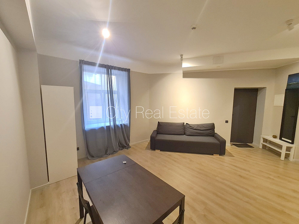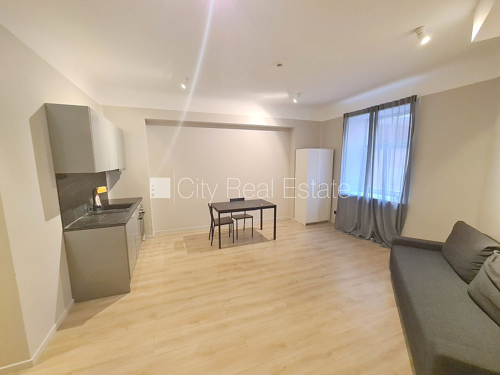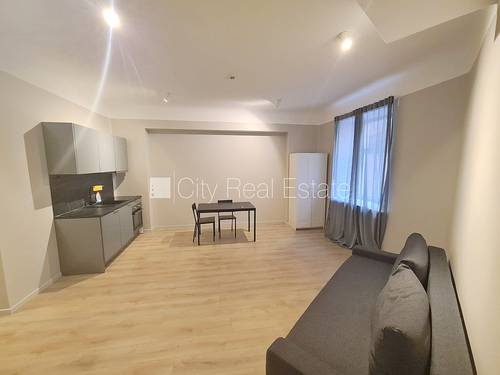 Pagalma ēka, renovēta māja, slēgts pagalms, ieeja no ielas un pagalma, ir lifts, kāpņu telpa pēc kapitālā remonta, logi vērsti uz pagalma pusi, studio tipa, virtuve apvienota ar istabu, augstie griesti, centrālā apkure, pilnā apdare, plastikāta stikla pakešu logi, krāsotas sienas, jauna santehnika, lamināta parketa grīda, flīžu grīdas segums, sanitārais mezgls apvienots, dušas kabīne, tualete, iebūvēta virtuves iekārta, izvelkamais stūra dīvāns, virtuves galds, krēsli, skapis, ledusskapis, cepeškrāsns, tvaika nosūcējs, veļas mašīna, dūmu detektors, diennakts videonovērošana, izīrē ar visu bildēs redzamo aprīkojumu, uz sešiem mēnešiem, uz 1 gadu, uz 2 gadiem, ar iespēju pagarināt līgumu, atbrīvo novembrī, slēdzot īres līgumu, Jums būs jāmaksā par pirmo īres mēnesi , kā arī jāiemaksā drošības depozīts viena mēneša īres maksas apmērā, izvēloties šo īpašumu, komisijas maksa par starpniecības pakalpojumiem ir vienāda ar vienu pusi (50%) no šī īpašuma viena mēneša īres maksas, CITY REAL ESTATE ID - 514936