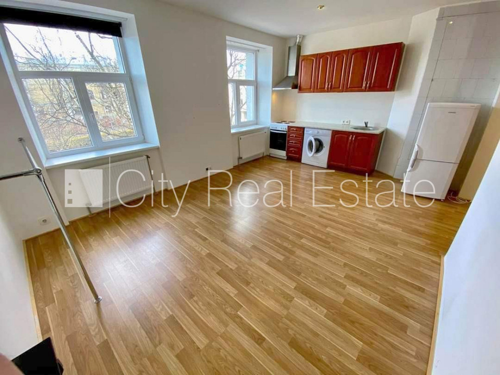 Pagalma ēka, renovēta māja, slēgts pagalms, ieeja no pagalma, kāpņu telpa pēc kosmētiskā remonta, logi vērsti uz pagalma pusi, studio tipa, virtuve apvienota ar istabu, augstie griesti, centrālā apkure, boilers karstajam ūdenim, pilnā apdare, plastikāta stikla pakešu logi, krāsotas sienas, jauna santehnika, lamināta parketa grīda, flīžu grīdas segums, sanitārais mezgls apvienots, dušas kabīne, tualete, iebūvēta virtuves iekārta, ledusskapis, elektriskā plīts, cepeškrāsns, tvaika nosūcējs, veļas mašīna, slēgta kāpņu telpa, izīrē ar visu bildēs redzamo aprīkojumu, atbrīvots, slēdzot īres līgumu, Jums būs jāmaksā par pirmo īres mēnesi , kā arī jāiemaksā drošības depozīts viena mēneša īres maksas apmērā, izvēloties šo īpašumu, komisijas maksa par starpniecības pakalpojumiem ir vienāda ar vienu pusi (50%) no šī īpašuma viena mēneša īres maksas, CITY REAL ESTATE ID - 426556