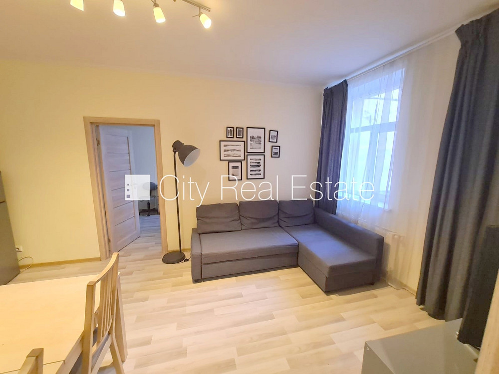 Pagalma ēka, renovēta māja, slēgts pagalms, iespēja nomāt autostāvvietu, ieeja no pagalma, kāpņu telpa pēc kapitālā remonta, logi vērsti uz pagalma pusi, guļamistabu skaits 2 gab., studio tipa, virtuve apvienota ar istabu, augstie griesti, centrālā apkure, pilnā apdare, plastikāta stikla pakešu logi, metāla durvis, krāsotas sienas, jauna santehnika, lamināta parketa grīda, flīžu grīdas segums, sanitārais mezgls apvienots, vanna, iebūvēta virtuves iekārta, iebūvēti sienas skapji, dīvāns, stūra dīvāns, gulta , virtuves galds, krēsli, skapis, televizors, ledusskapis, elektriskā plīts, cepeškrāsns, tvaika nosūcējs, veļas mašīna, internets, namrunis, slēgta kāpņu telpa, izīrē ar visu bildēs redzamo aprīkojumu, atbrīvots, CITY REAL ESTATE ID - 511806