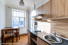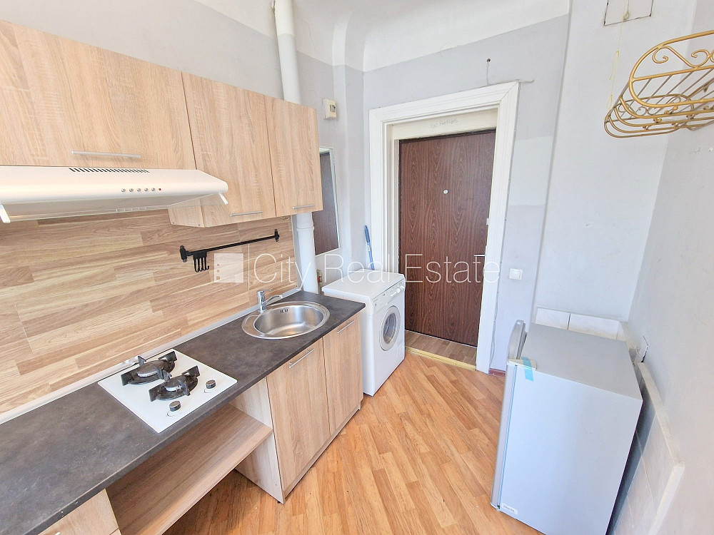 Zeme īpašumā, fasādes māja, ieeja no ielas, ir lifts, lodžija, logi vērsti uz pagalma pusi, plašs skats no loga, viena istaba izolēta, virtuve, centrālā apkure, plastikāta stikla pakešu logi, krāsotas sienas, lamināta parketa grīda, sanitārais mezgls apvienots, vanna, tualete, iebūvēta virtuves iekārta, virtuves galds, krēsli, skapis, ledusskapis, elektriskā plīts, cepeškrāsns, tvaika nosūcējs, veļas mašīna, slēgta kāpņu telpa, pārdod ar visu bildēs redzamo aprīkojumu, atbrīvots, reģistrēts zemesgrāmatā, CITY REAL ESTATE ID - 517842