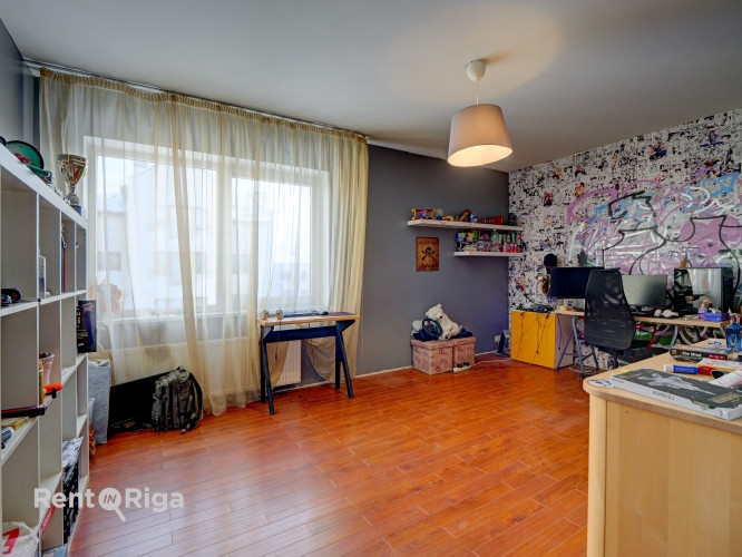 Dzīvoklis jaunajā projektā ar pazemes stāvvietu un noliktavu. Telpas sastāv no viesistabas, kas apvienota ar koridoru un virtuves zonu (45 kvm), divām guļamistabām (19 un 13 kvm), lielas vannas istabas (9 kvm), otras tualetes, divām skapja telpām un maza franču balkoniņa. Īpašums tiek pārdots ar visu sadzīves tehniku, iebūvēto virtuvi un daļu no mēbelēm. Cenā ietilpst apakšzemes autostāvvieta ar paceļamiem vārtiem, kā arī individuāla noliktavas telpa. Ēka celta 2007.gadā. Dzīvokļa griestu augstums 2.7 m. Centrālā apkure ar individuālo skaitītāju. Zeme ir īpašumā. Komunālo maksājumu rēķins decembrī bija 360 eur, ieskaitot elektrību, no kā apkure sastādīja 120 eur. Mājas uzkrājuma fondā šobrīd ir ap 8 000 eur.