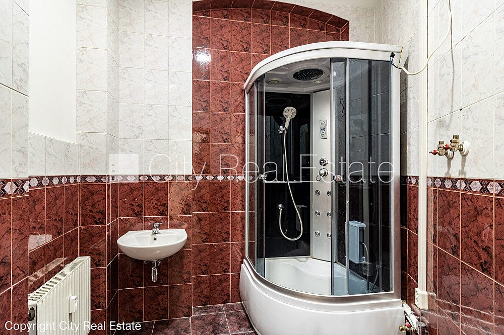 Beletāža, kāpņu telpa pēc kosmētiskā remonta, istabas izolētas, viena telpa caurstaigājama, kamīns, centrālā apkure, plastikāta stikla pakešu logi, krāsotas sienas, jauna santehnika, parketa grīda, sanitārais mezgls atsevišķs, džakūzī dušas kabīne, tualete, iebūvēta virtuves iekārta, gulta , divguļamā gulta, atpūtas krēsli, drēbju skapis, televizors, ledusskapis, cepeškrāsns, gāzes plīts, tvaika nosūcējs, veļas mašīna, internets, slēgta kāpņu telpa, iespēja izmantot kā biroja telpas, CITY REAL ESTATE ID - 512371