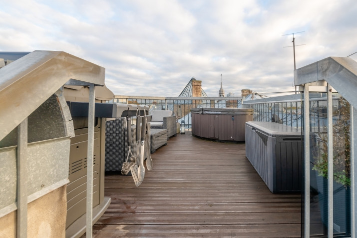 Ekskluzīvs divu līmeņu dzīvoklis ar terasi Rīgas centrā! Dzīvoklis pilnībā renovēts skandināvu stilā ar augstvērtīgiem materiāliem. Gaišas ozolkoka grīdas, individuāli izgatavotas mēbeles un lieli logi rada plašu un mājīgu vidi. Pirmajā stāvā - atvērta dzīvojamā zona ar virtuvi, ko iespējams atdalīt ar stikla bīdāmajām durvīm. Virtuve aprīkota ar iebūvētām ierīcēm un integrētu ēdamzonu. Viesistabu papildina balta ķieģeļu siena un iebūvēts vīna plaukts. Otrajā stāvā - guļamistaba ar skatu uz pilsētu, kabinets/guļamistaba un vannas istaba ar brīvi stāvošu vannu. Pārdomāti iebūvētie risinājumi nodrošina gan estētiku, gan funkcionalitāti. Dzīvojamā platība 70.7 m2 Terase 27 m2 platībā ar džakuzi, grila vietu un atpūtas mēbelēm un skatu visos 360 grādos! Infrastruktūra tuvumā: + Parks + Ērta sabiedriskā transporta kustība + Veikali + Restorāni un kafejnīcas Koplietošanas pagalma stāvvieta iedzīvotājiem! Komunālie maksājumi: + Janvāris, 2025: 367 EUR Interesē? Zvani un sarunāsim apskates datumu!
