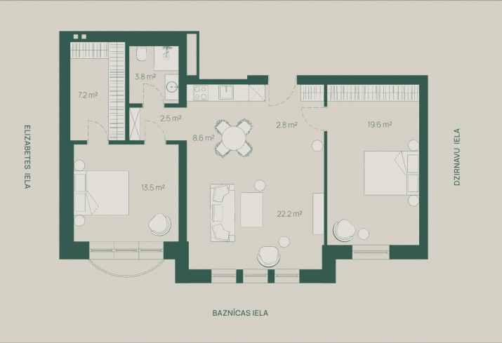 Elegants dzīvoklis "Šefela namā", Baznīcas ielā 5. Aicinām Jūs kļūt par daļu no Rīgas arhitektūras pērles Šefela nama! Šī šarmantā jūgendstila dzīvojamā ēka, celta 1907. gadā pēc ievērojamā arhitekta Frīdriha Šefela projekta, atrodas pašā Rīgas sirdī, netālu no Brīvības pieminekļa un Ministru kabineta. Dzīvokļa plānojums: + viesistaba apvienota ar virtuvi, skatu uz Baznīcas ielu; + saimnieku guļamistaba ar savu sanmezglu un garderobes telpu; + 2. izolētā guļamistaba; + sanmezgls ar dušu un tualeti. Par projektu: "Šefela nams" sastāv no divām ēkām fasādes un pagalma mājas. Fasādes ēka pieejami dzīvokļi no 50m līdz 140m, kas atšķiras pēc plānojuma un stila, taču tās vieno unikāls vēsturiskais šarms un centrālā atrašanās vieta. Pilnībā renovēts un modernizēts: Saglabātas vēsturiskās detaļas: oriģinālais koka parkets, grezni griestu ornamenti, logu vitrāžas un koka kāpņu margas. Jaunie īpašnieki var veikt dzīvokļu pārplānojumu, saglabājot autentisko atmosfēru. Labiekārtots un apzaļumots iekšpagalms ar soliņiem un velonovietni. Papildus iespējas: + Iespējams iegādāties mantu glabāšanas noliktavu. + Ēkas iedzīvotājiem būs pieejama koplietošanas veļas mazgātava (laundry room). "Šefela nams" apvieno vēsturisku eleganci ar modernām ērtībām un piedāvā lielisku iespēju radīt mājokli tieši tādu, kādu vēlaties, saglabājot autentiskās vēsturiskās vērtības. Ideāls investīciju objekts vai mājvieta tiem, kas novērtē Rīgas arhitektūras un vēstures mantojumu!