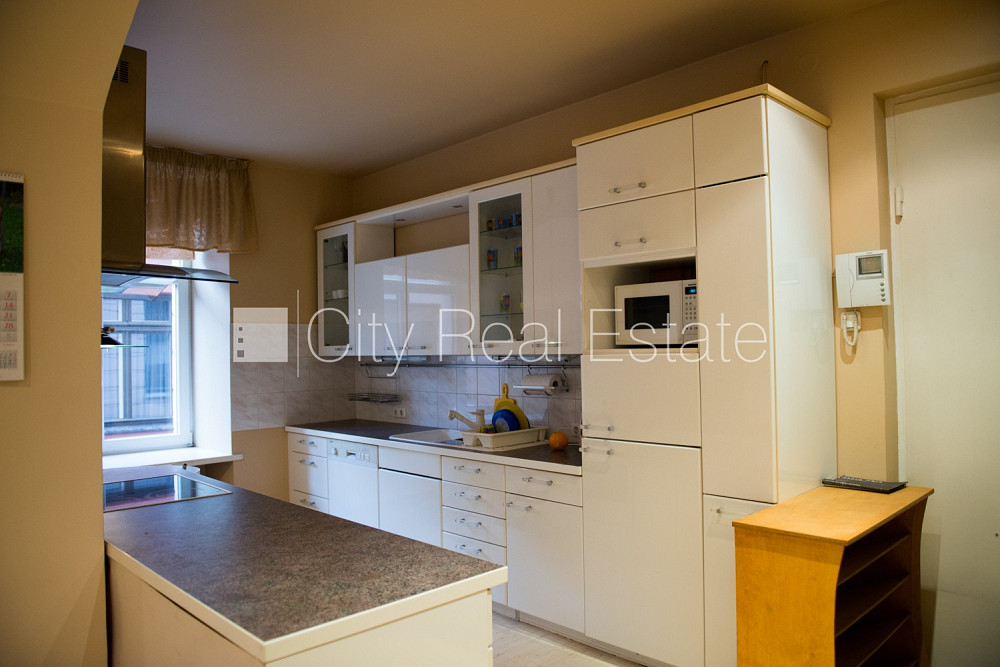 Fasādes māja, renovēta māja, bruģēts piebraucamais ceļš, ir lifts, kāpņu telpa pēc kosmētiskā remonta, logi vērsti mājas abās pusēs, viesistaba, virtuve, garderobe, augstie griesti, kamīns, centrālā apkure, pilnā apdare, plastikāta stikla pakešu logi, iebūvēti gaismas ķermeņi, lamināta parketa grīda, flīžu grīdas segums, sanitārais mezgls apvienots, vanna, dušas kabīne, iebūvēta virtuves iekārta, iebūvēti sienas skapji, dīvāns, divguļamā gulta, televizors, ledusskapis, trauku mazgājamā mašīna, elektriskā plīts, mikroviļņu krāsns, veļas mašīna, optiskais internets, namrunis, kāpņu telpā koda atslēga, kamīna piederumi, atbrīvots, stratēģiski izdevīga vieta, CITY REAL ESTATE ID - 510597