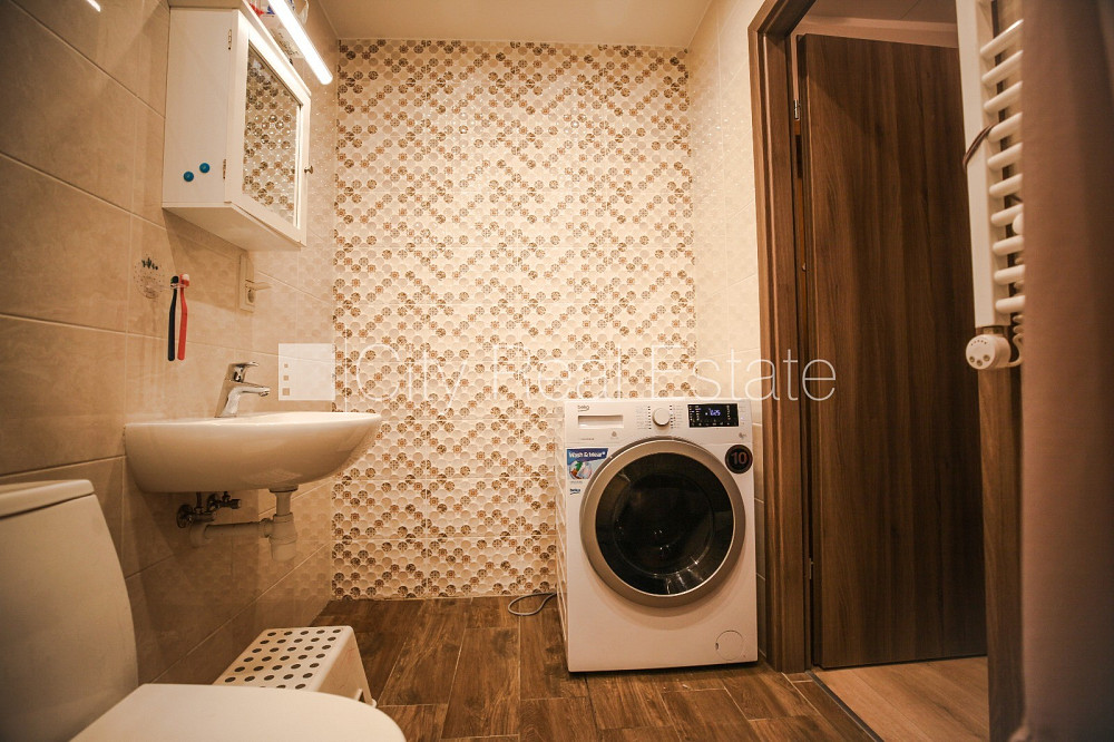 Jaunceltne, labiekārtota apzaļumota teritorija, slēgta teritorija, vieta automašīnai, pagalmā bērnu spēļu laukums, terase, studio tipa, virtuve apvienota ar viesistabu, palīgtelpas pagrabstāvā 2 m2, radiatori ar termoregulatoriem, pilnā apdare, apsildāma grīda vannas istabā, sanitārais mezgls apvienots, dušas kabīne, iebūvēta virtuves iekārta, ledusskapis, elektriskā plīts, cepeškrāsns, veļas mašīna, diennakts videonovērošana, video domofons, kāpņu telpā koda atslēga, stratēģiski izdevīga vieta, CITY REAL ESTATE ID - 516187