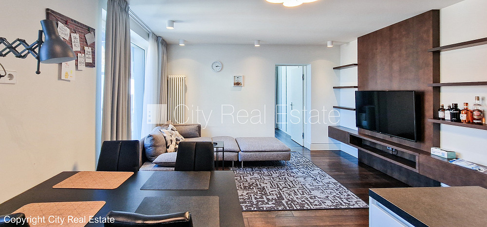 Jaunceltne, slēgts pagalms, iespēja nomāt autostāvvietu, apzaļumota teritorija ar jaunu kokaugu stādījumiem, teritorijas stāvlaukums noklāts ar bruģakmens segumu, ir lifts, balkons, terase, logi vērsti mājas abās pusēs, gaisa ventilācijas sistēma, istabas izolētas 2 gab., studio tipa, virtuve apvienota ar viesistabu 24,4 m2, halle 4,7 m2, radiatori ar termoregulatoriem, centrālā apkure, apkures skaitītāji, individuāla apkures sistēmas uzskaite, pilnā apdare, apsildāma grīda vannas istabā, lielie skatlogi, metāla durvis, parketa grīda, flīžu grīdas segums, divi sanitārie mezgli, vanna, dušas kabīne, bidē, iebūvēta virtuves iekārta, stūra dīvāns, divguļamā gulta, virtuves galds, krēsli, kumode, gaisa kondicionieris, televizors, ledusskapis, trauku mazgājamā mašīna, indukcijas plīts, cepeškrāsns, veļas mašīna, internets, diennakts videonovērošana, video domofons, kāpņu telpā koda atslēga, atbrīvots, stratēģiski izdevīga vieta, CITY REAL ESTATE ID - 517326