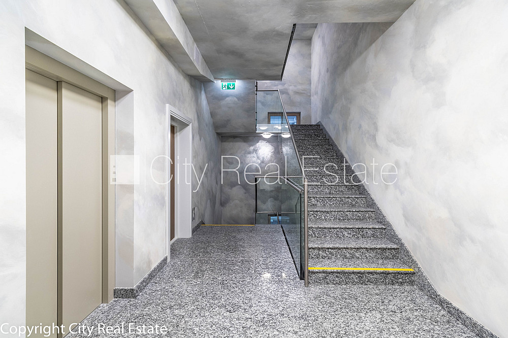 Jaunceltne, pagalma ēka, slēgts pagalms, ir lifts, divi balkoni, logi vērsti uz pagalma pusi, viena istaba izolēta, studio tipa, virtuve apvienota ar viesistabu, augstie griesti, radiatori ar termoregulatoriem, centrālā apkure, apkures skaitītāji, individuāla apkures sistēmas uzskaite, pilnā apdare, apsildāma grīda vannas istabā, lielie skatlogi, koka stikla pakešu logi, iebūvēti gaismas ķermeņi, parketa grīda, marmora grīdas segums, divi sanitārie mezgli, vanna, iebūvēta virtuves iekārta, divguļamā gulta, ledusskapis, trauku mazgājamā mašīna, indukcijas plīts, cepeškrāsns, internets, video domofons, slēgta kāpņu telpa, kāpņu telpā koda atslēga, stratēģiski izdevīga vieta, komisijas maksa par starpniecības pakalpojumiem nav jāmaksā, CITY REAL ESTATE ID - 424404