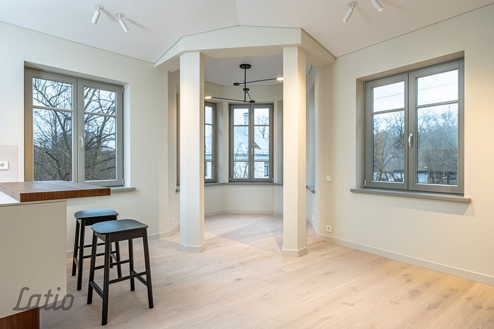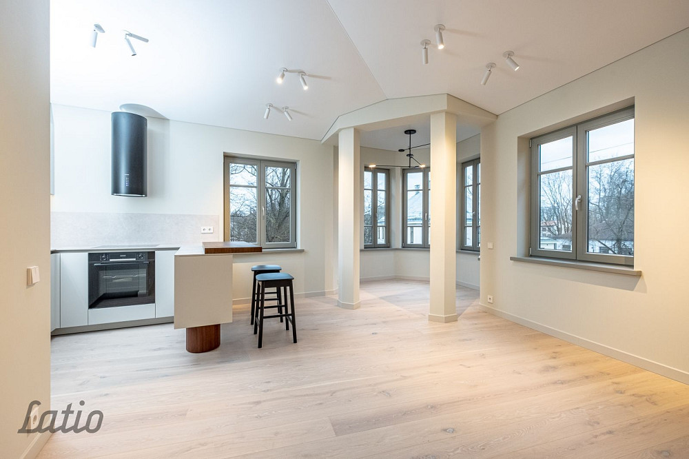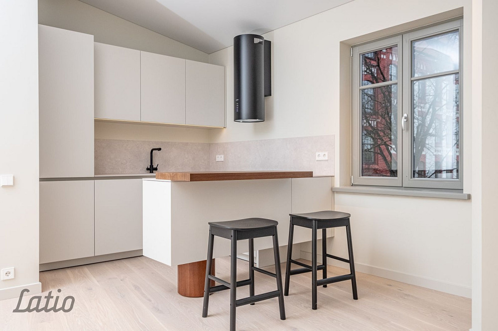 Dzīvoklis ir pilnībā gatavs dzīvošanai ir iebūvētu vituvi, tehniku, visu aprīkojumu, santehniku.