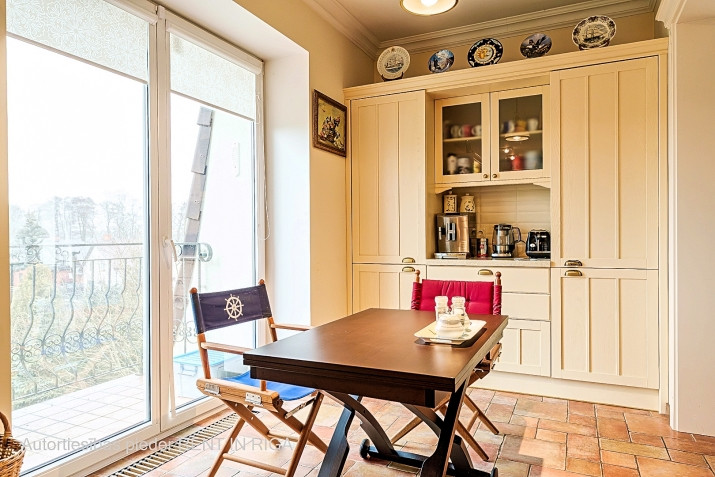 Pārdod ekskluzīvu 2 līmeņu dzīvokli jaunajā projektā Baltezera terases! Dzīvoklis ir izbūvēts 2 līmeņos pa visu ēkas 3. un 4. stāvu. Tieši šajā ēkā ir tikai 3 dzīvokļi un tā atrodas projekta Baltezera terases vislabākajā vietā pirmajā līnijā no kanāla un vistuvāk Lielajam Baltezeram, iegūstot burvīgu skatu uz ezeru un Juglas kanālu. Dzīvokļa kopējā platība ir 191m2 + 12m2 ar vairākām terasēm. Dzīvokļa 1. līmenī atrodas plaša, caurstaigājama viesistaba ar kamīnu, aiz kuras ir virtuve. Pie ieejas durvīm atrodas viesu tualete, tālāk plašs gaitenis aizvedīs Jūs uz 3 izolētām istabām, kur vienai no tām ir atsevišķa vannasistaba, kas aprīkota ar automātisku gudro tualetes podu un dušu ar tvaika kabīni un masāžu strūklu u.c. Uz dzīvokļa 2. līmenī Jūs nokļūsiet pa skaistām kāpnēm, kas izgatavotas no Kanādas ozola speciāli priekš šī klienta. Dzīvokļa augšējā stāvā atradīsiet 2 plašas istabas ar panorāmas skatiem no terasēm, atsevišķu walk-in tipa garderobes telpu un vienu vannasistabu ar dušu. Mājas -1. līmenī pieejama 50m2 plaša daļa no visas garāžas ar slēdzamu telpu mantu glabāšanai. Un no garāžas līdz dzivoklim Jūs nogādās, varētu teikt, personīgs lifts, jo ēkas 3. stāvā tas apstājas tikai priekš Jūsu dzīvokļa. Kā arī no kopējās 0.15ha zemes platības ap māju, Jums pienāksies 1/3 daļa. Dzīvoklī ir veikts ļoti augstvērtīgs remonts, ir apsildāmas grīdas 1. līmeņa dzīvojamā istabā, virtuvē, gaitenī un vannas istabā, iebūvēta dārga sadzīves tehnika. Dzīvoklis aprīkotas ar akmens masas keramiku, kas ražota Latvijā, kvalitatīviem vācu ražojuma logiem, durvīm no dabiska koka, kas gatavotas Baltkrievijā, kā arī ozolkoka parketa grīdām. Dzīvoklis tiek pārdots bez mēbelēm, taču tās var iegādāties par papildus samaksu. Dzīvoklī izbūvēta kvalitatīva kondicionēšanas sistēma. Tas tiek apsildīts ar autonomu gāzes apkures katlu un namu apsaimnieko SIA Ādažu namsaimnieks. Visa Baltezera terases teritorija ir iežogota, tai ir apsardze un videonovērošana. Iekļūt teritorijā var caur automātiskiem vārtiem ar tālvadības pulti. Šajā teritorijā ir pieejams bērnu rotaļu laukums un tenisa korts. Kanāla krastā ir atpūtas maja ar trenažieru zāli, kā arī turpat ir izveidota īpaša peldvieta. Tuvākais pārtikas veikals būs 4 minūšu brauciena attālumā un 10 minūšu braucienā būs jau Juglas apkaime, kur pieejama visa ikdienā nepieciešamā infrastruktūra veikali, atpūtas vietas, ārstniecības un izglītības iestādes. Liels pluss ir tāds, ka turpat pie mājas ir iespējams izveidot piestātni Jūsu laivai vai jahtai un ūdens ceļi ļauj izbraukt līdz pat Baltijas jūrai.