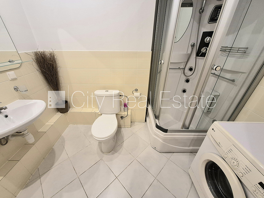 Projekts - Centra Nams, jaunceltne, slēgta teritorija, pazemes autostāvvieta, apsargāts pagalms, ieeja no ielas un pagalma, ir lifts, kāpņu telpa pēc kapitālā remonta, logi vērsti uz ielas pusi, guļamistabu skaits 1 gab., viena istaba izolēta, studio tipa, virtuve apvienota ar viesistabu, garderobe, augstie griesti, centrālā apkure, apkures skaitītāji, individuāla apkures sistēmas uzskaite, plastikāta stikla pakešu logi, krāsotas sienas, jauna santehnika, iebūvēti gaismas ķermeņi, lamināta parketa grīda, flīžu grīdas segums, divi sanitārie mezgli, vanna, dušas kabīne, tualete, iebūvēta virtuves iekārta, iebūvēti sienas skapji, dīvāns, gulta , virtuves galds, krēsli, ledusskapis, trauku mazgājamā mašīna, elektriskā plīts, cepeškrāsns, tvaika nosūcējs, veļas mašīna, diennakts videonovērošana, slēgta kāpņu telpa, atbrīvots, CITY REAL ESTATE ID - 425542