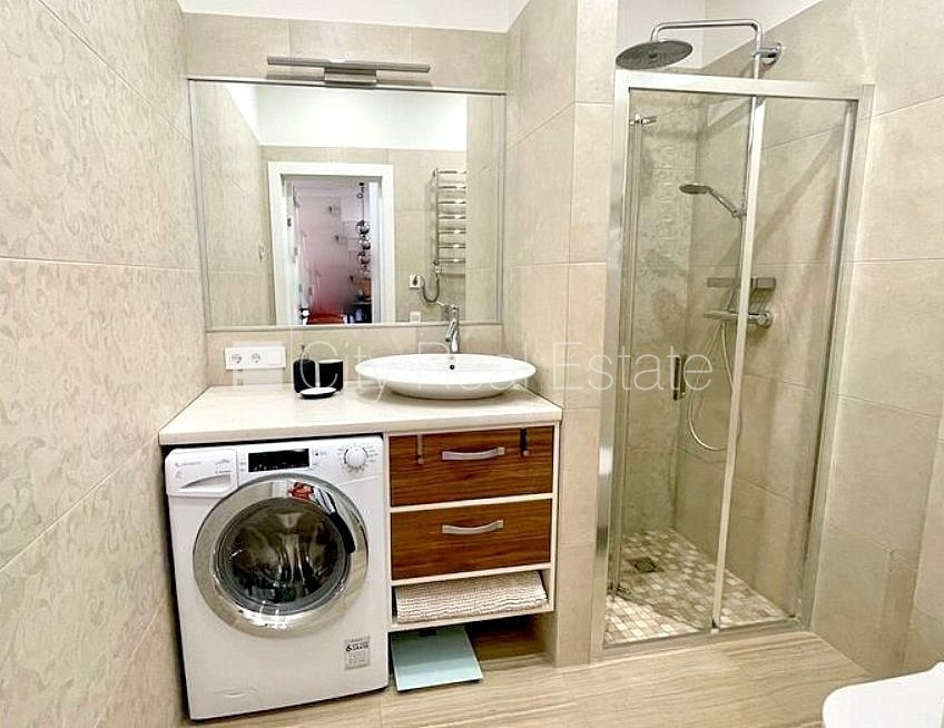 Projekts - Rīdzenes Rezidence, jaunceltne, fasādes māja, labiekārtota apzaļumota teritorija, bruģēts piebraucamais ceļš, objektu apsargā fiziskā apsardze, luksuss apartamenti , ir lifts, logi vērsti uz parka pusi, guļamistabu skaits 1 gab., studio tipa, virtuve apvienota ar viesistabu, garderobe, augstie griesti, radiatori ar termoregulatoriem, automatizēta apkures sistēma, apkures skaitītāji, individuāla apkures sistēmas uzskaite, pilnā apdare, lielie skatlogi, plastikāta stikla pakešu logi, ozola koka grīdas segums, parketa grīda, flīžu grīdas segums, sanitārais mezgls apvienots, dušas kabīne, iebūvēta virtuves iekārta, iebūvēti sienas skapji, izvelkamais stūra dīvāns, divguļamā gulta, televizors, ledusskapis, trauku mazgājamā mašīna, elektriskā plīts, cepeškrāsns, veļas mašīna, optiskais internets, signalizācija, diennakts apsardze, atbrīvots, stratēģiski izdevīga vieta, CITY REAL ESTATE ID - 517299