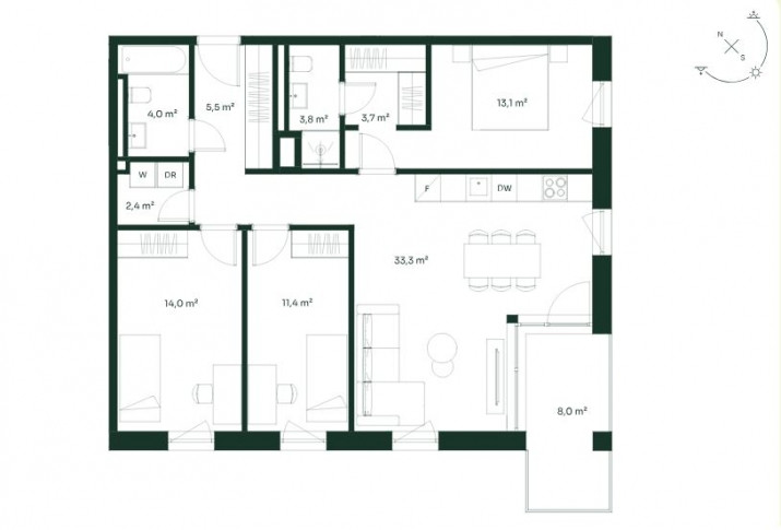 Mūsdienīgs un līdz detaļām pārdomāts 4-istabu dzīvoklis Vītolu ielā 2 vieta kur daba un ērtības satiekas. Dzīvokļus plānots nodot jaunajiem īpašniekiem 2026.gada vasaras izskaņā. Par dzīvokļiem: + Plaši logi no grīdas līdz griestiem; + Lieli balkoni un terases; + A energoefektivitātes klase; + Lifts katrā mājā; + Ūdens grīdas apsilde; + Augstākās kvalitātes ventilācija ar piespiedu ventilāciju un siltuma atgūšanu. Projektā pieejami arī citi 2-istabu, 3-istabu un 4-istabu dzīvokļi zvaniet vai rakstiet, lai iegūtu plašāku informāciju un ieplānotu apskati. Par apkaimi: - Jauni, integrēti gājēju un velosipēdu celiņi, kas nodrošina pieejamību visā rajonā; - Ērta sabiedriskā transporta kustība; - Autostāvvietas pārcelsies galvenokārt pazemē, atbrīvojot vietu, lai kvartāla iedzīvotāji varētu baudīt plašo labiekārtoto iekšpagalma teritoriju; - Dabas un atpūtas cienītājiem tuvumā ir skaistais Mežaparks.