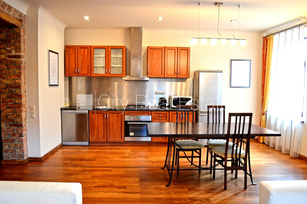 Pagalma ēka, slēgts pagalms, logi vērsti mājas abās pusēs, plašs skats no loga, guļamistabu skaits 2 gab., studio tipa, virtuve apvienota ar viesistabu, garderobe, halle, griestu augstums 3.60 m, kamīns, centrālā apkure, apsildāma grīda vannas istabā, koka stikla pakešu logi, metāla durvis, koka dēļu grīdas segums, flīžu grīdas segums, sanitārais mezgls apvienots, džakūzī vanna, trauku mazgājamā mašīna, signalizācija, dūmu detektors, kāpņu telpā koda atslēga, pārdod ar visu bildēs redzamo aprīkojumu, atbrīvo pēc nepieciešamības, reģistrēts zemesgrāmatā, stratēģiski izdevīga vieta, CITY REAL ESTATE ID - 424311