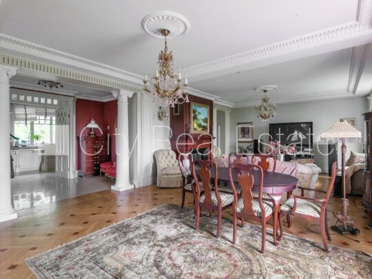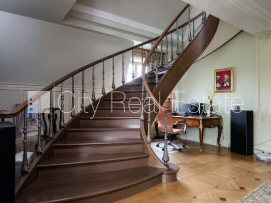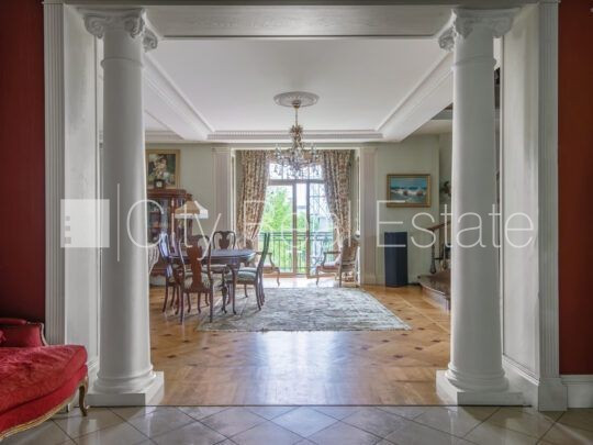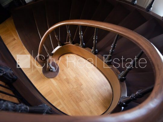 Zeme īpašumā, fasādes māja, renovēta māja, ķieģeļu mūra sienas, fasāde ar dekoratīvo apmetumu, labiekārtota apzaļumota teritorija, iespēja nomāt autostāvvietu, ieeja no ielas, kāpņu telpa pēc kosmētiskā remonta, balkons, erkers, logi vērsti mājas abās pusēs, plašs skats no loga, guļamistabu skaits 3 gab., viesistaba 60 m2, atpūtas telpa, divas halles, garderobe, palīgtelpa, augstie griesti, gāzes apkure, automatizēta apkures sistēma, apkures skaitītāji, individuāla apkures sistēmas uzskaite, divos līmeņos, pilnā apdare, koka stikla pakešu logi, jauna santehnika, ozola koka grīdas segums, lamināta parketa grīda, parketa grīda, jauna elektroinstalācija, mainīta kanalizācijas sistēma, divi sanitārie mezgli, dušas kabīne, džakūzī vanna, iebūvēta virtuves iekārta, iebūvēti sienas skapji, ledusskapis, trauku mazgājamā mašīna, elektriskā plīts, cepeškrāsns, veļas mašīna, optiskais internets, signalizācija, slēgta kāpņu telpa, stratēģiski izdevīga vieta, līdz Vecrīgai 1 km, palīdzēsim nokārtot hipotekāro kredītu šī īpašuma iegādei, CITY REAL ESTATE ID - 513538