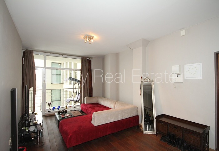 Zeme īpašumā, jaunceltne, ir lifts, kāpņu telpa pēc kapitālā remonta, balkons, viena istaba izolēta, studio tipa, virtuve apvienota ar viesistabu, centrālā apkure, pilnā apdare, krāsotas sienas, jauna santehnika, parketa grīda, sanitārais mezgls apvienots, dušas kabīne, iebūvēta virtuves iekārta, divguļamā gulta, televizors, ledusskapis, elektriskā plīts, tvaika nosūcējs, mikroviļņu krāsns, veļas mašīna, internets, diennakts videonovērošana, kāpņu telpā koda atslēga, CITY REAL ESTATE ID - 423916